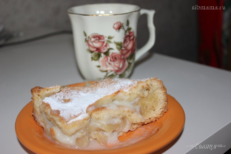 Количество сахара, конечно, можно варьировать...под свои вкусовые предпочтения... Я про оригинальный рецепт говорила..... в оригинале заливка получается, как будто сгущенкой яблоки залиты... На мой вкус очень сладко!!! А моим сладкоежкам очень даже...нравится!!!  |