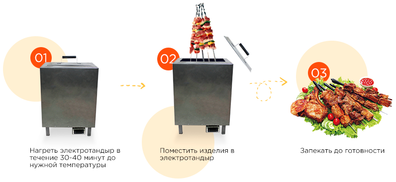 - на электротандыр стоит обратить внимание владельцам маленьким киоскам и кафе, которые не имеют открытую зону гриля – они смогут существенно разнообразить свое меню.