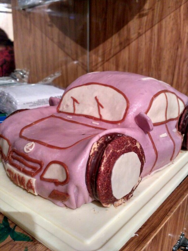| горожанка писал(а): | Побоялась я связыватся с бисквитом,может рискну в следующий раз.Вот что получилось у меня.Знаю что смешная,но я её стряпала с любовью.Жалко что не смогла купить сливки в баллончиках,с ними было бы наряднее.