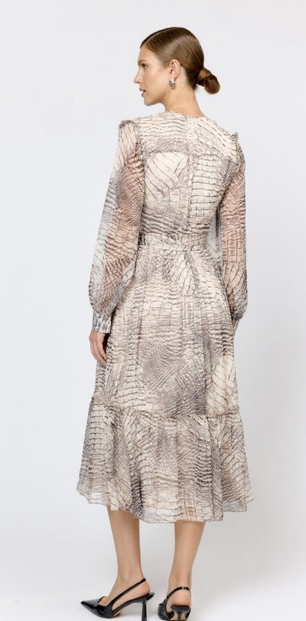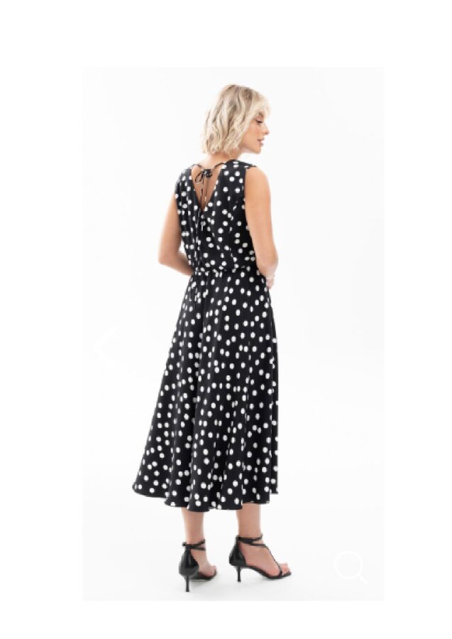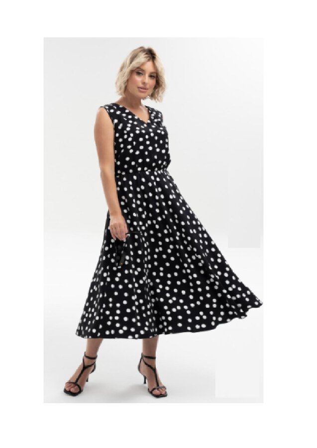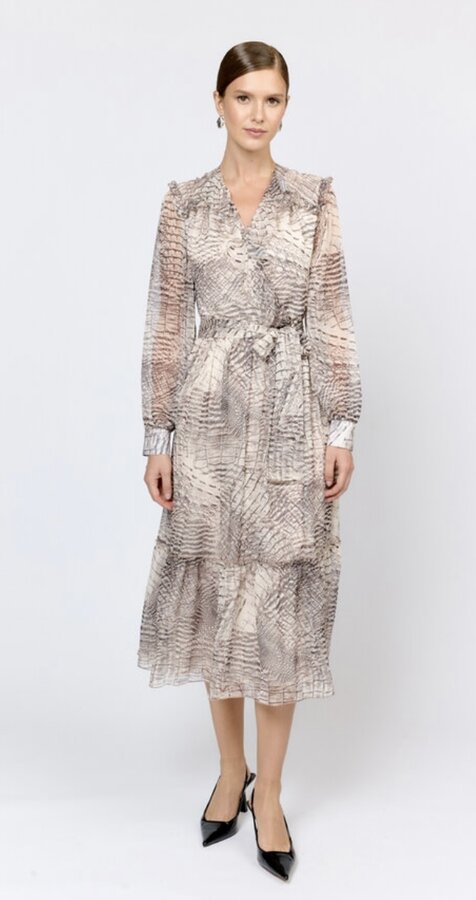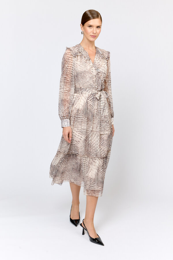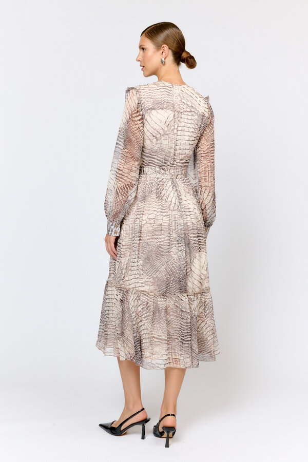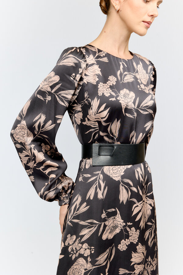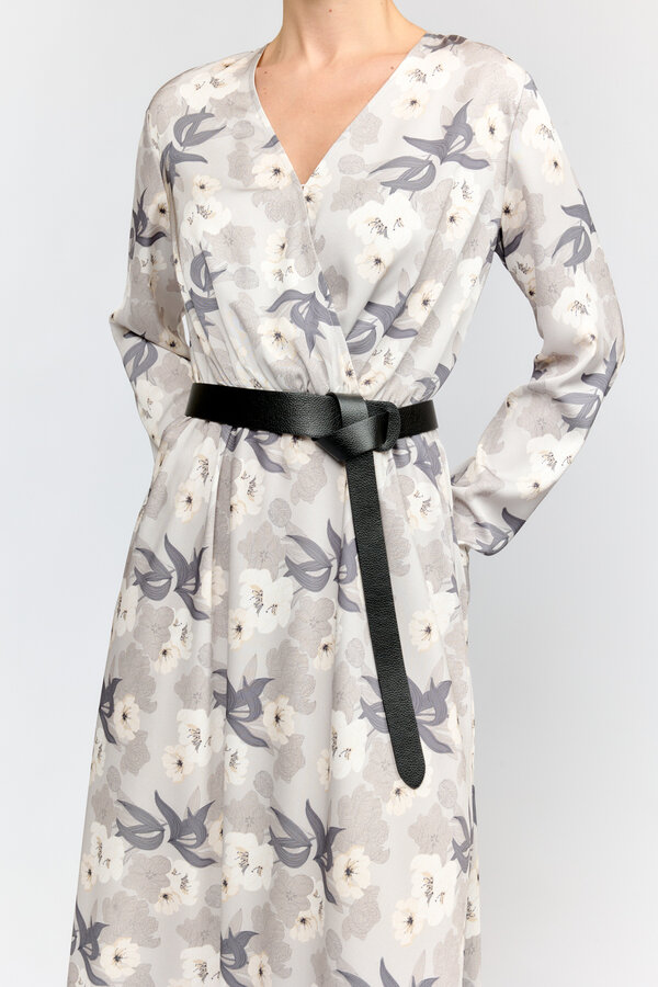 85 Платье с отрезной юбкой с воланами. Вырез V-образный. Длина миди.Шифон с бархатистым эффектом. Принт гортензии. (100% п.э.) 4800 2500