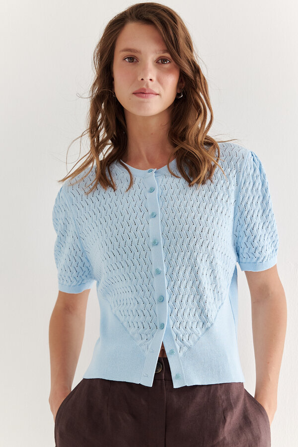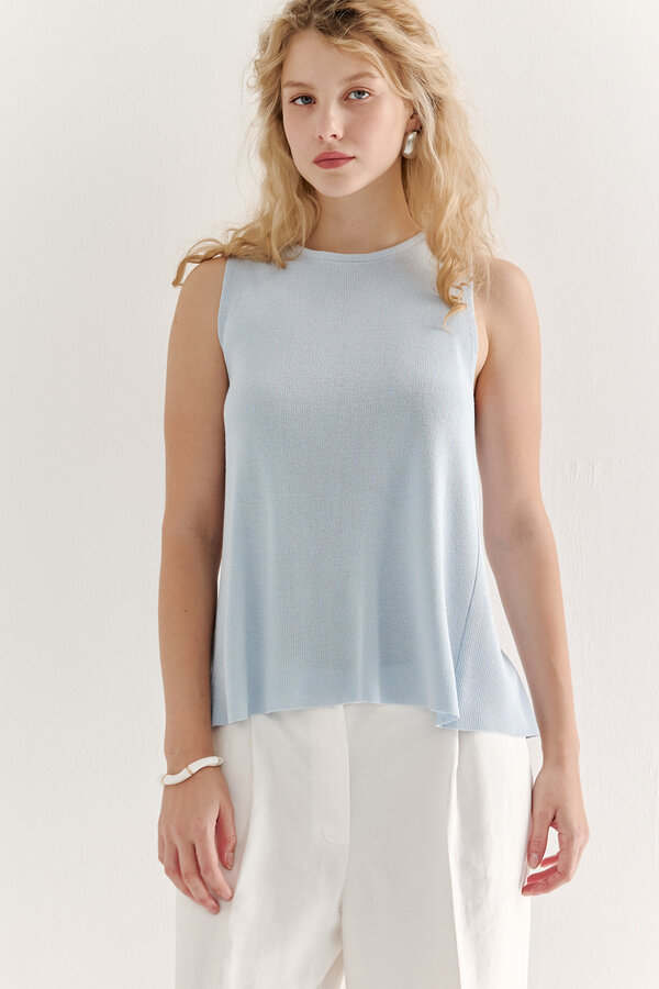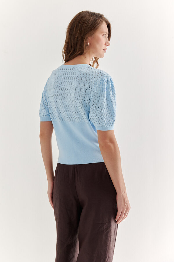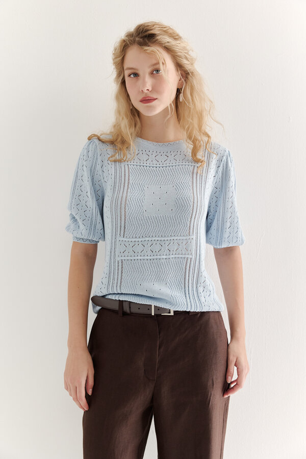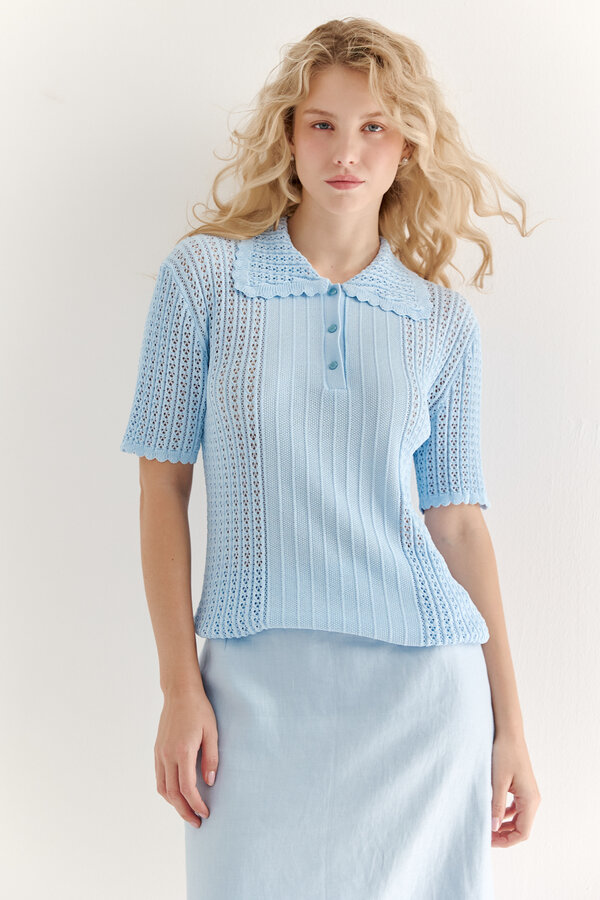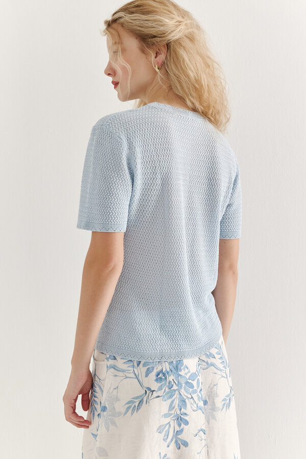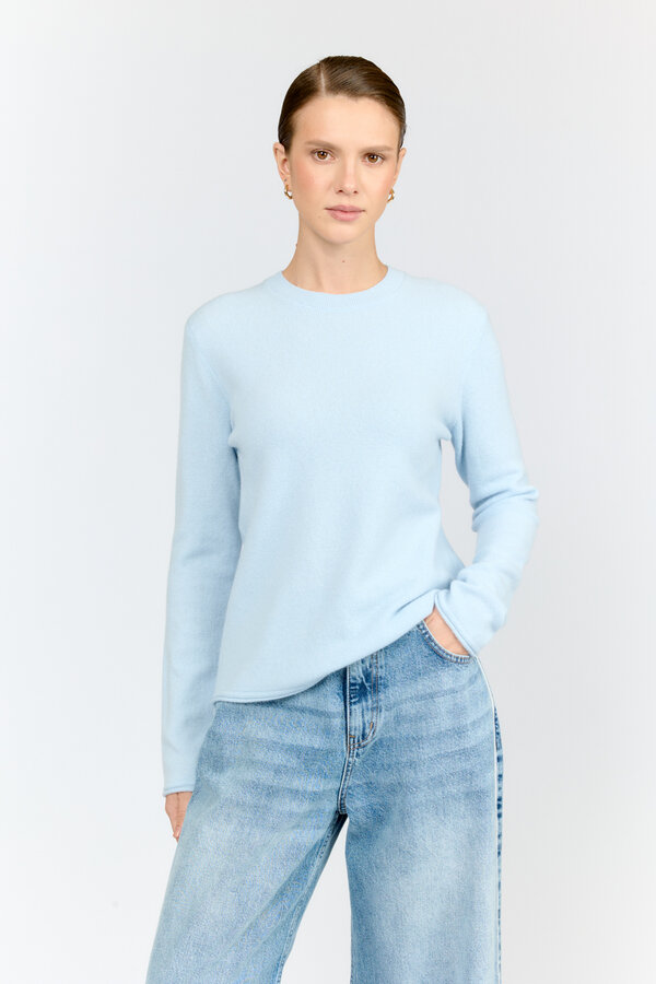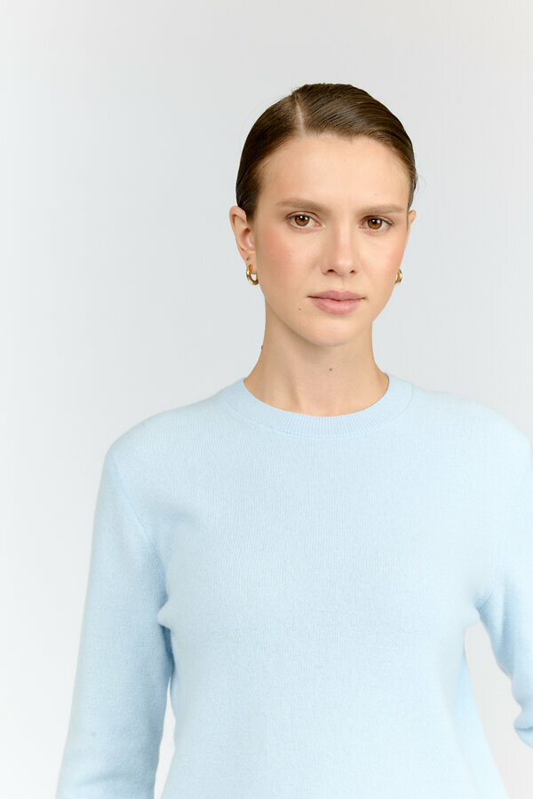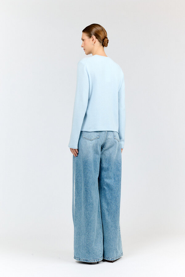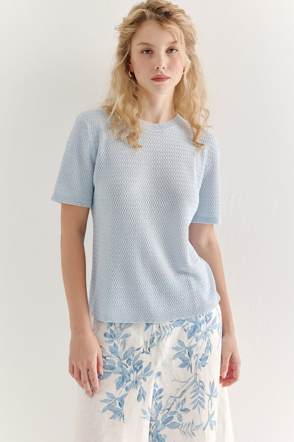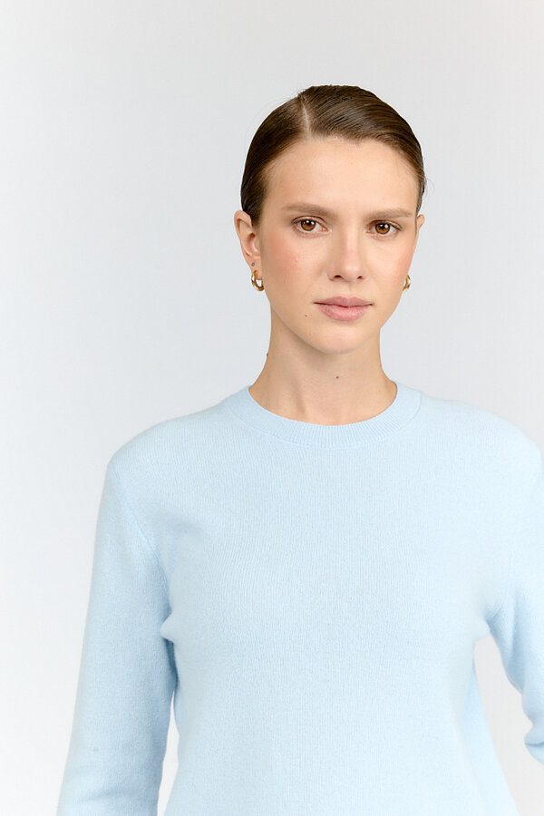 9 Джемпер со спущенными плечами и накладным карманам по груди. Ярко-голубой (50% вискоза, 50% полиамид) 2300 1500