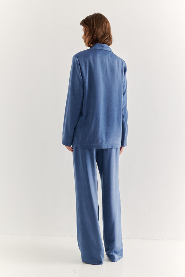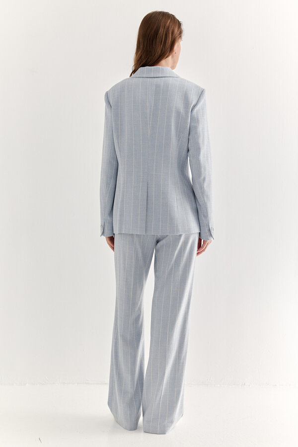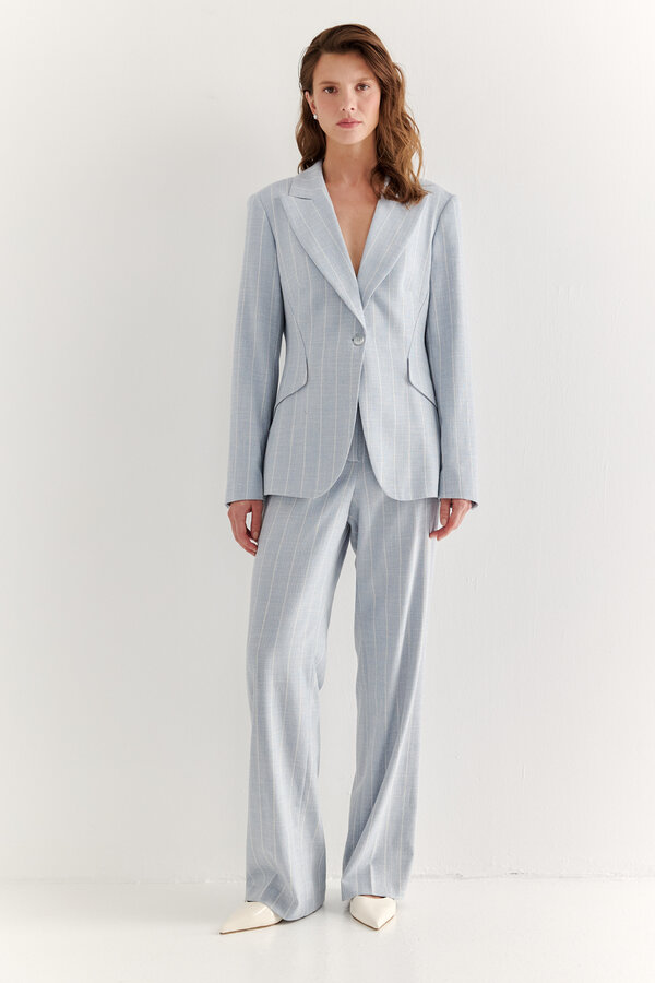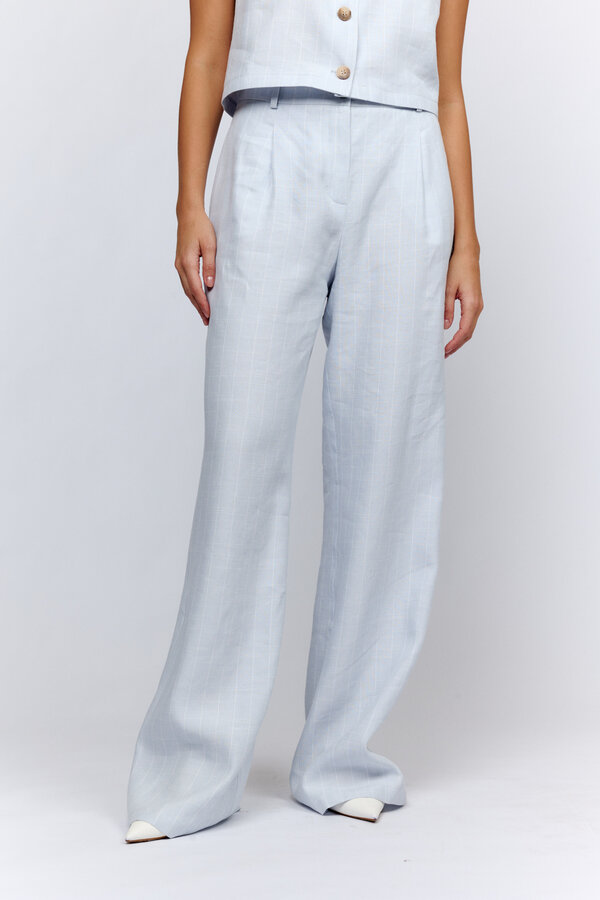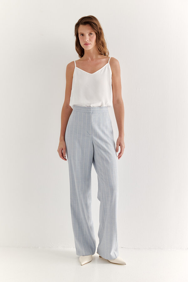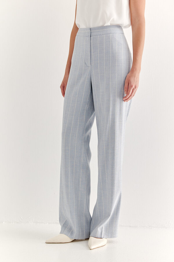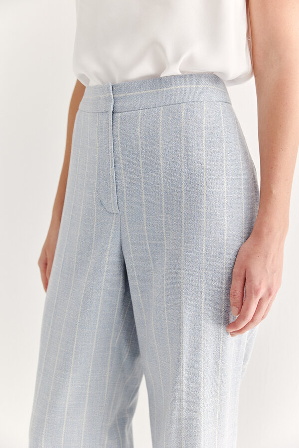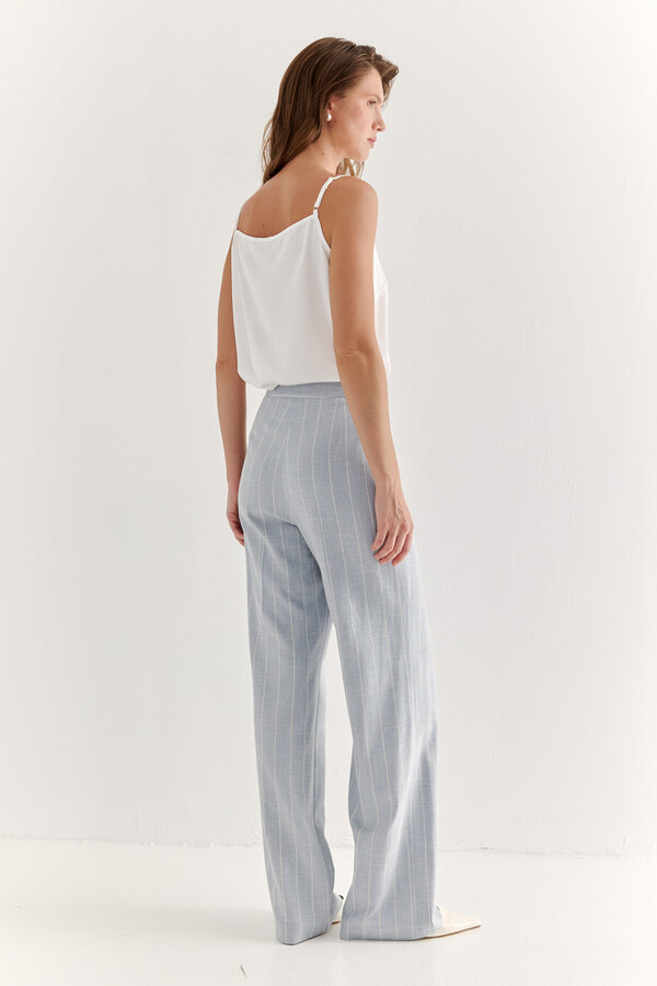 52 Классические брюки зауженные книзу со стрелками. NEW, PREMIUM QUALITY Костюмная ткань твил нежно-голубого цвета (66% полиэстер, 29% вискоза, 5% спандекс) 3770 2500