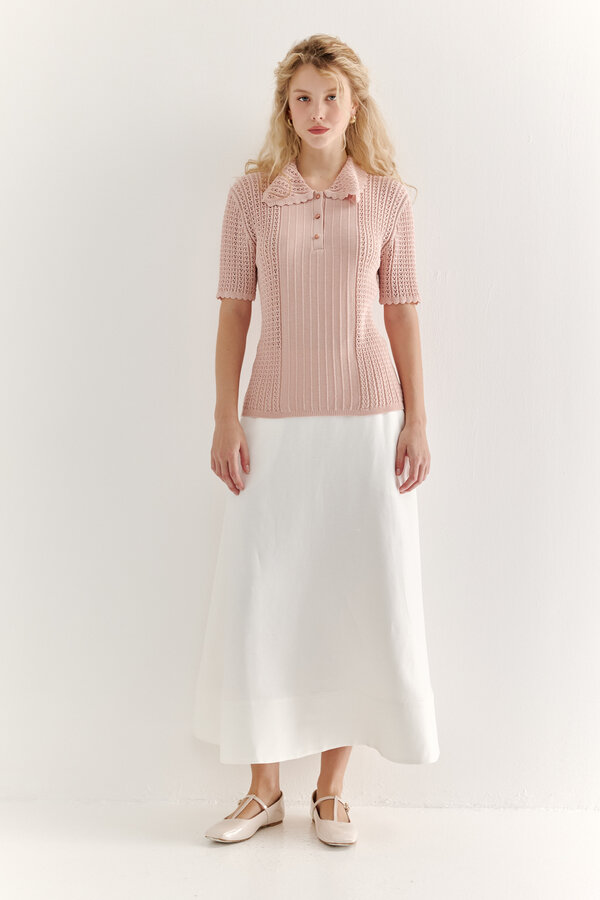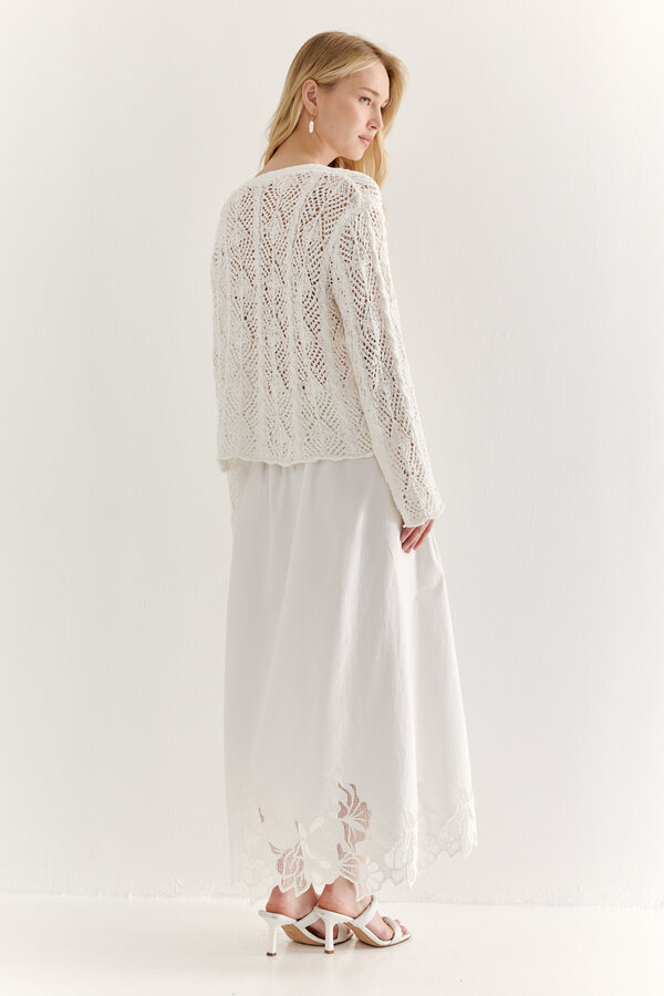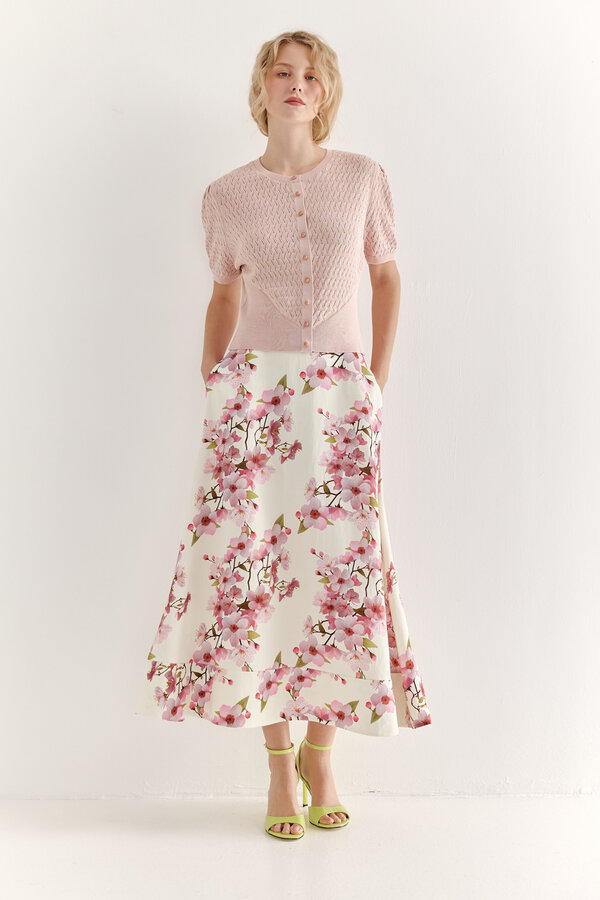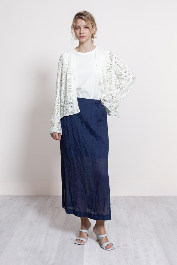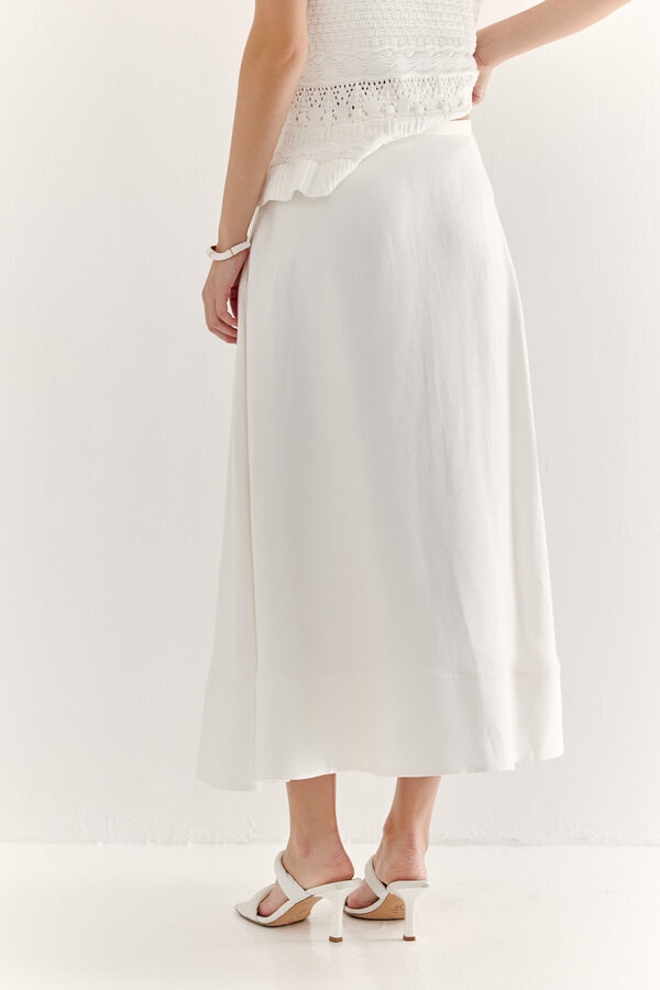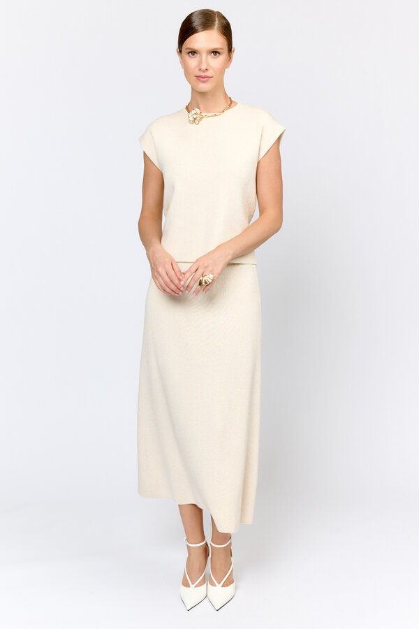 19 Юбка на резинке с запахом. Длина миди. МОЛОЧНЫЙ/ЗОЛОТО (62% ВИСКОЗА,26% ПОЛИАКРИЛ,5% ПОЛИАМИД,4% МЕТАНИТ, 3% ЭЛАСТАН) 4500 3000