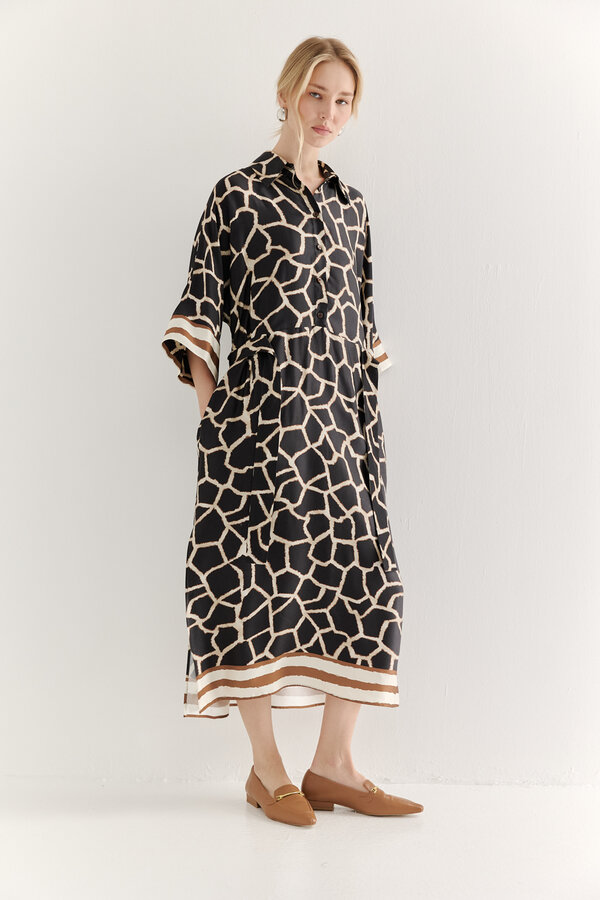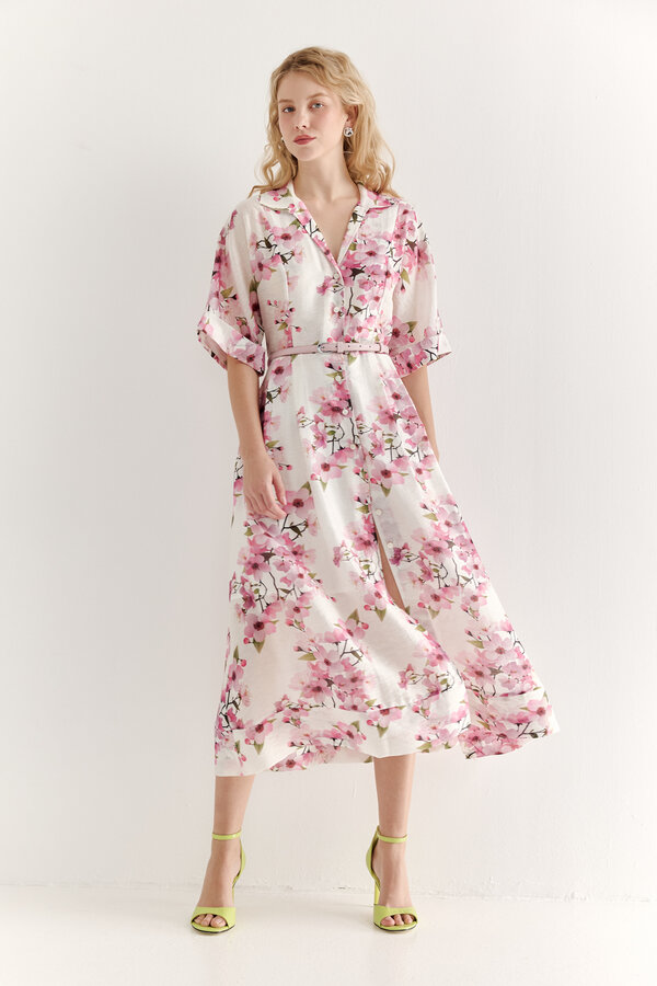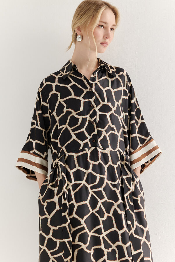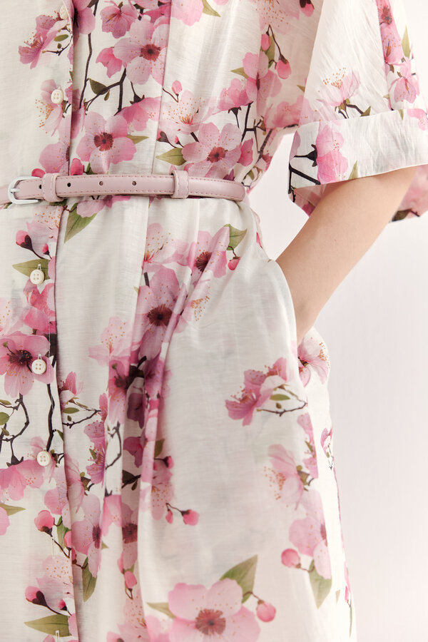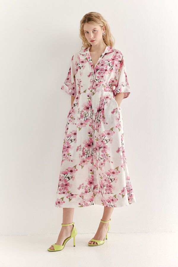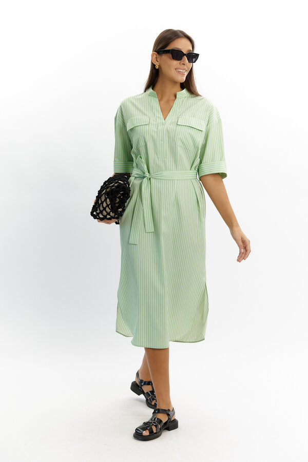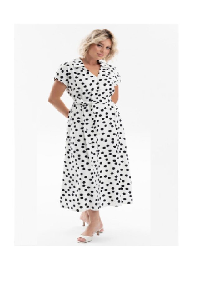 45 Платье свободного кроя с карманами и поясом на талии. Рукав короткий. Длина миди. TREND NEW PREMIUM QUALITY Хлопок плательно-блузочный с трендовым принтом в бело-желтой гамме (98% хлопок, 2% эластан) 3800 2000