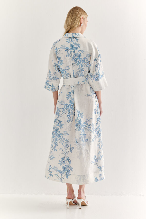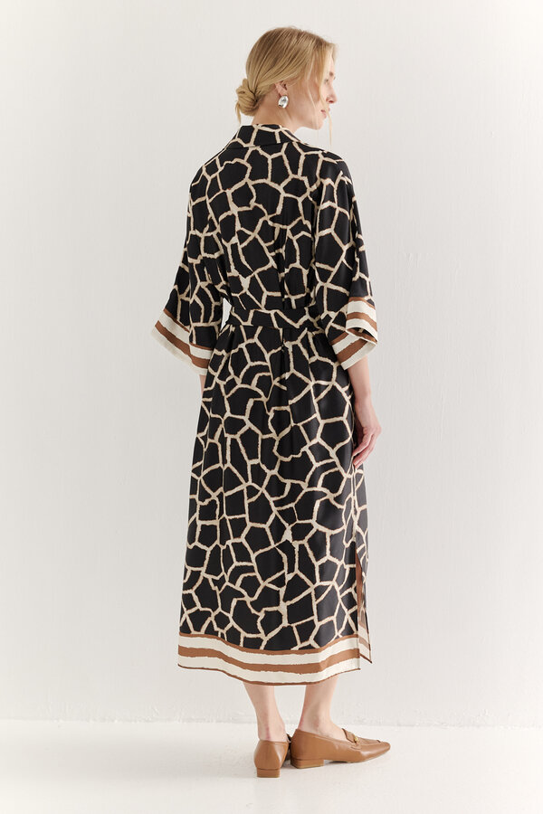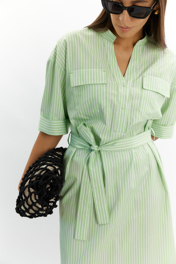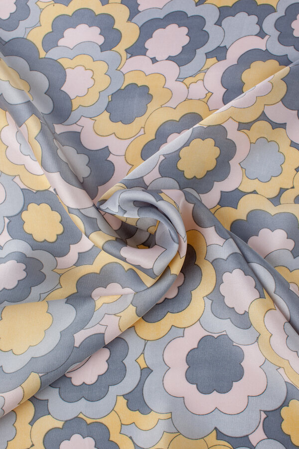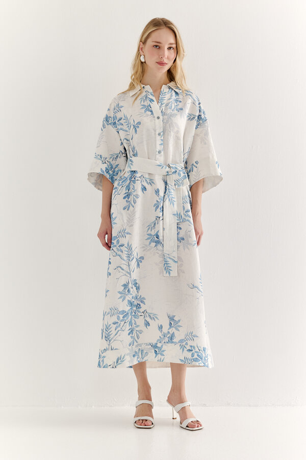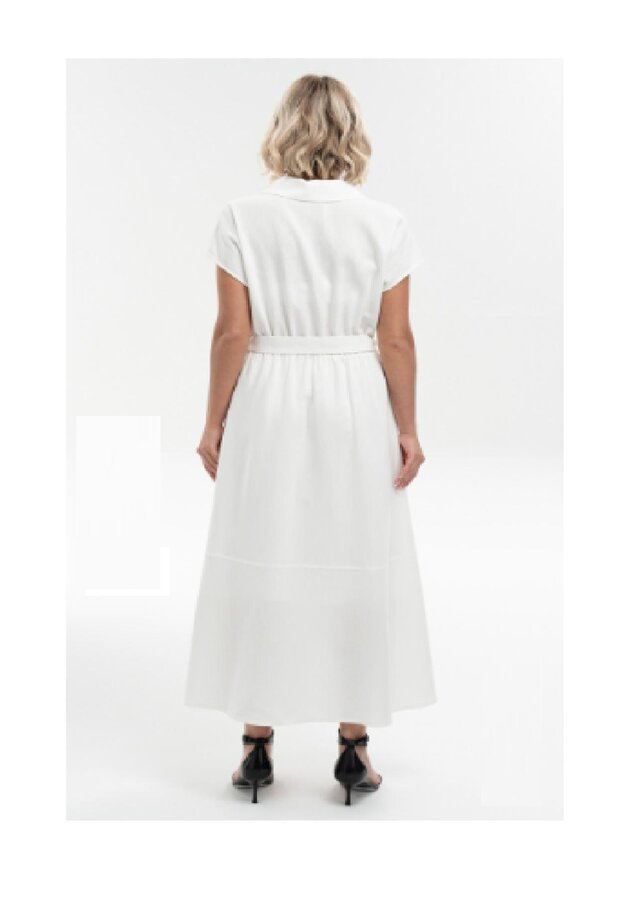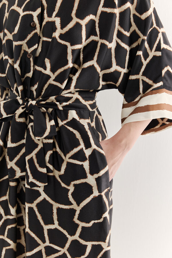 45 Платье свободного кроя с карманами и поясом на талии. Рукав короткий. Длина миди. TREND NEW PREMIUM QUALITY Хлопок плательно-блузочный с трендовым принтом в бело-желтой гамме (98% хлопок, 2% эластан) 3800 2000