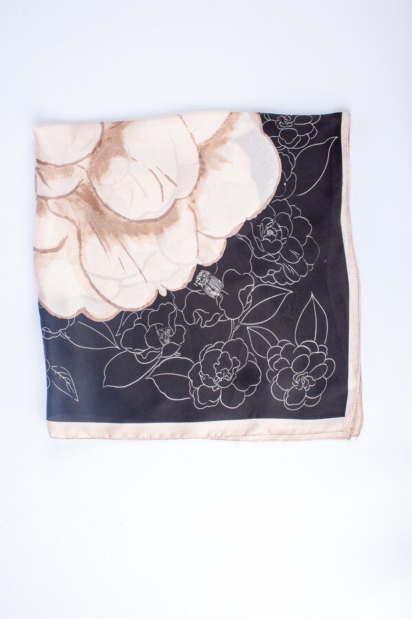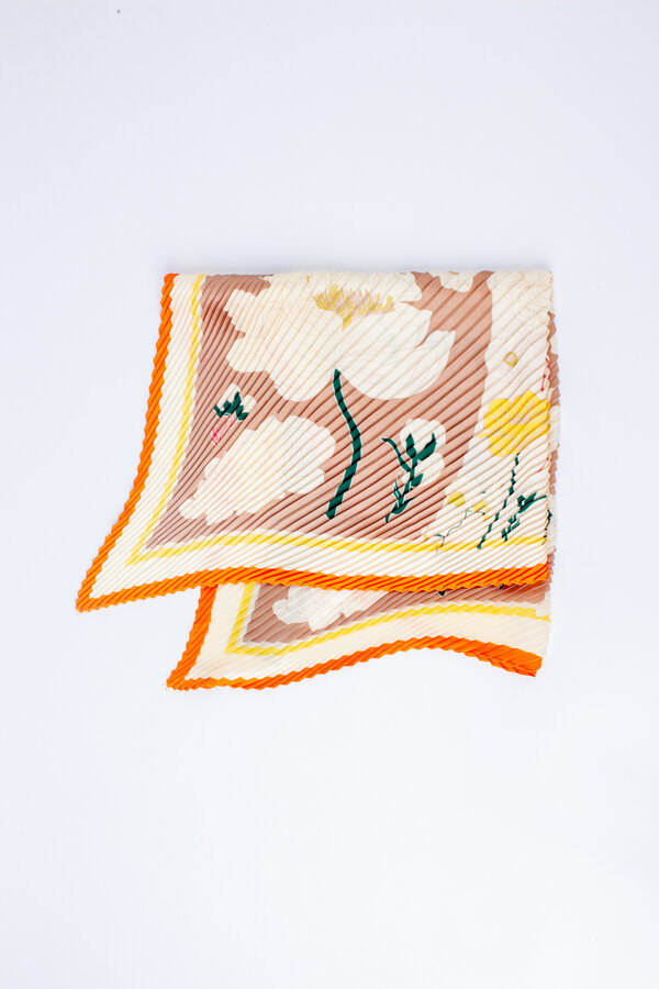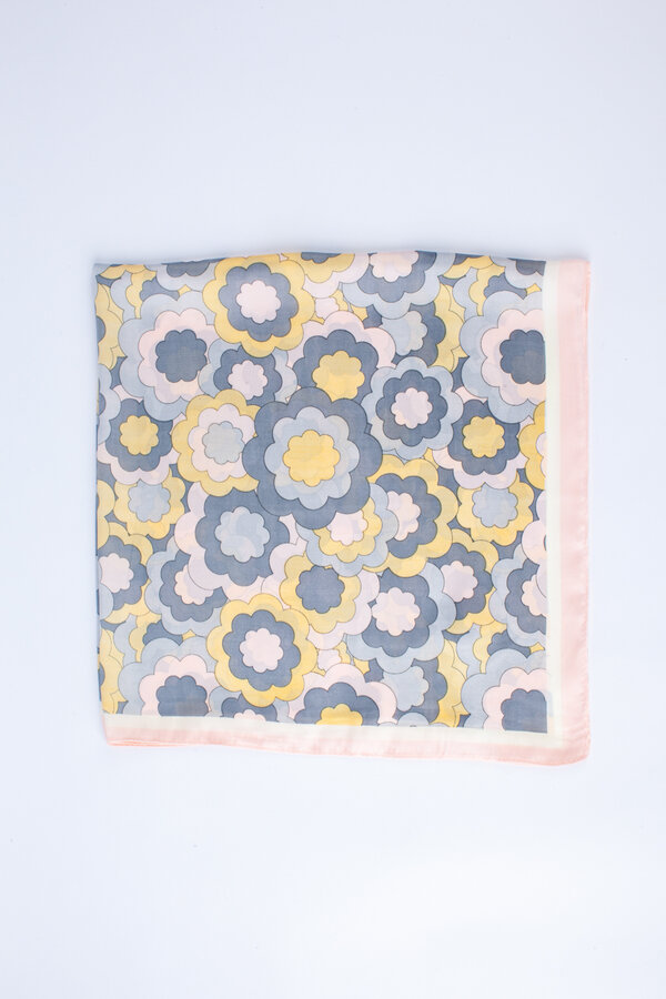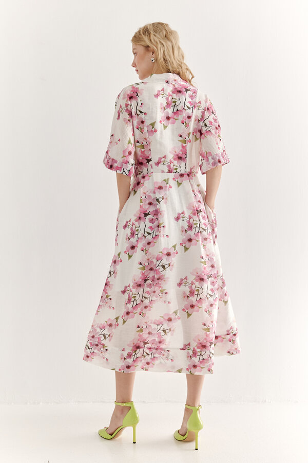 87 Платье с отрезной юбкой с воланами. Вырез V-образный. Длина миди.Шифон с бархатистым эффектом. Принт букет весенних цветов (100% п.э.) 4800 2500