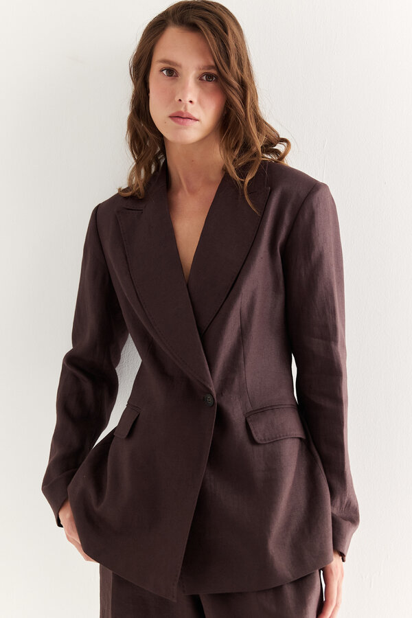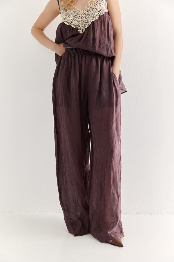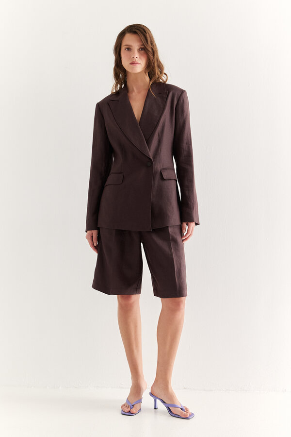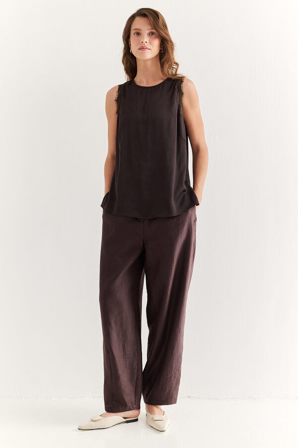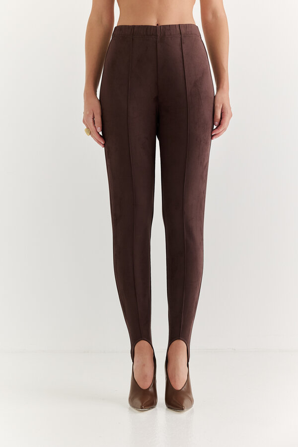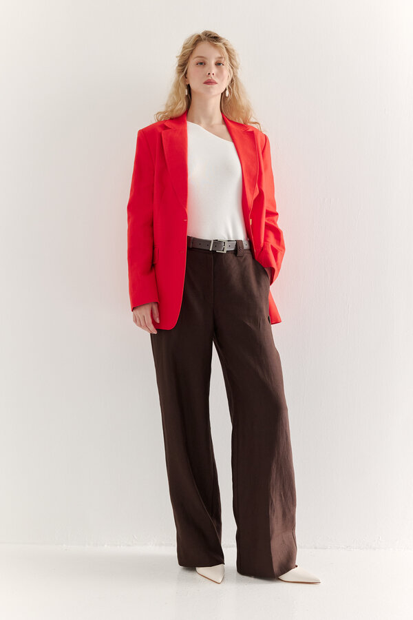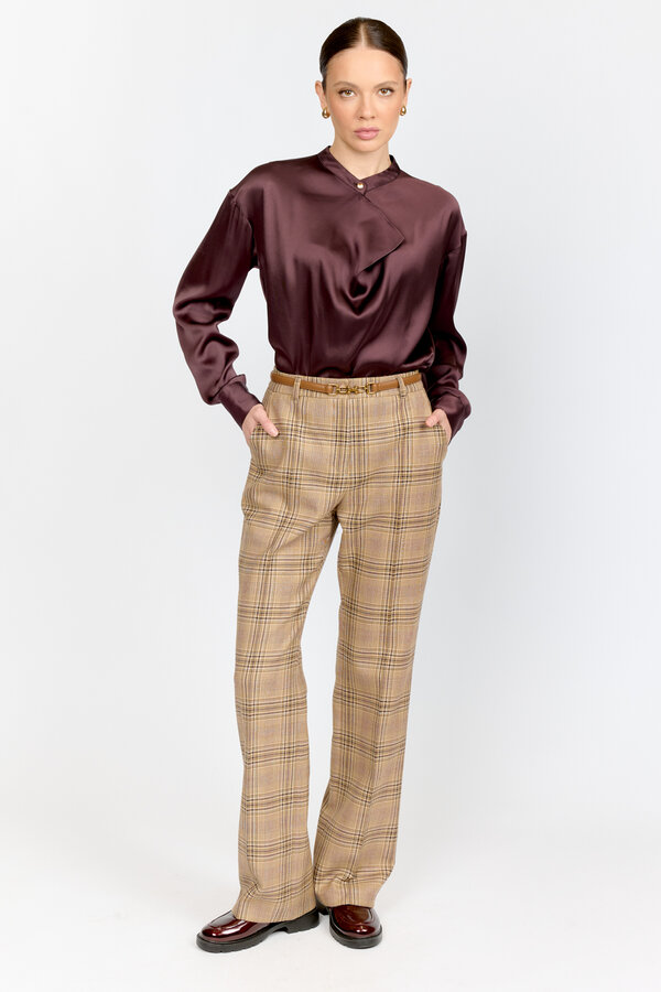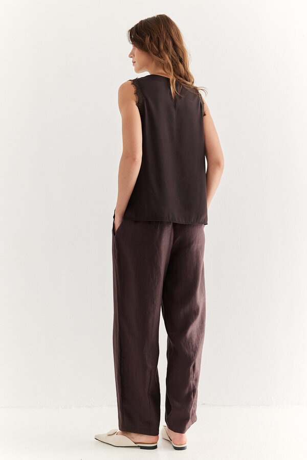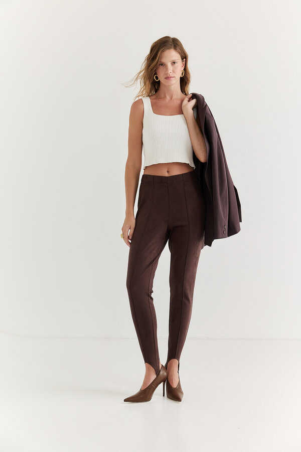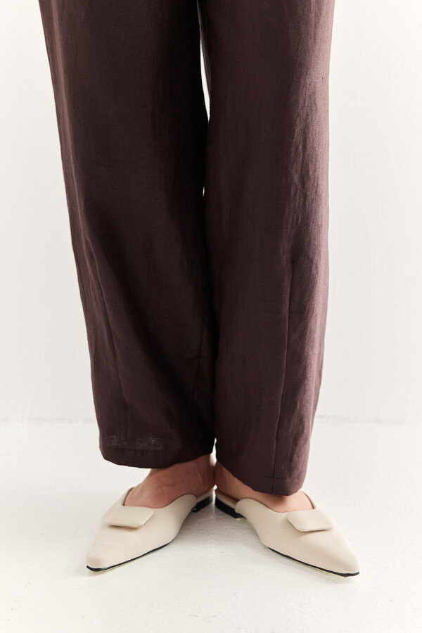 33 Брюки прямого силуэта со стандартной посадкой. Костюмная ткань коричневого цвета (77% терилен, 18% район, 5% спандекс) 3400