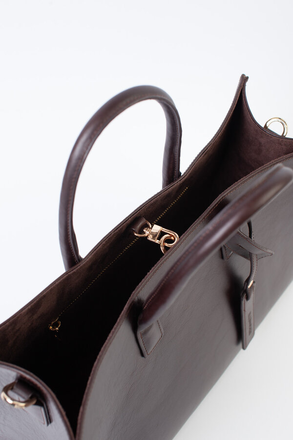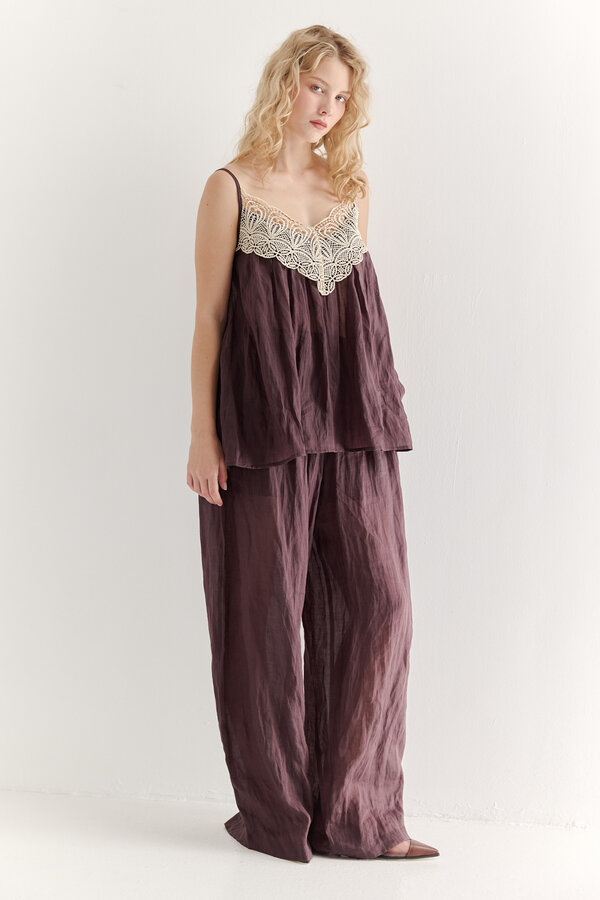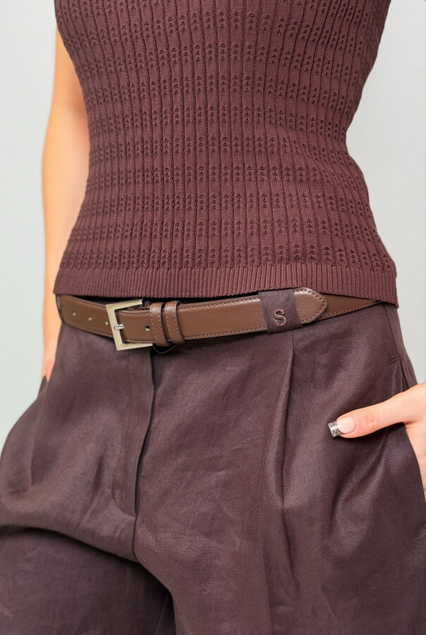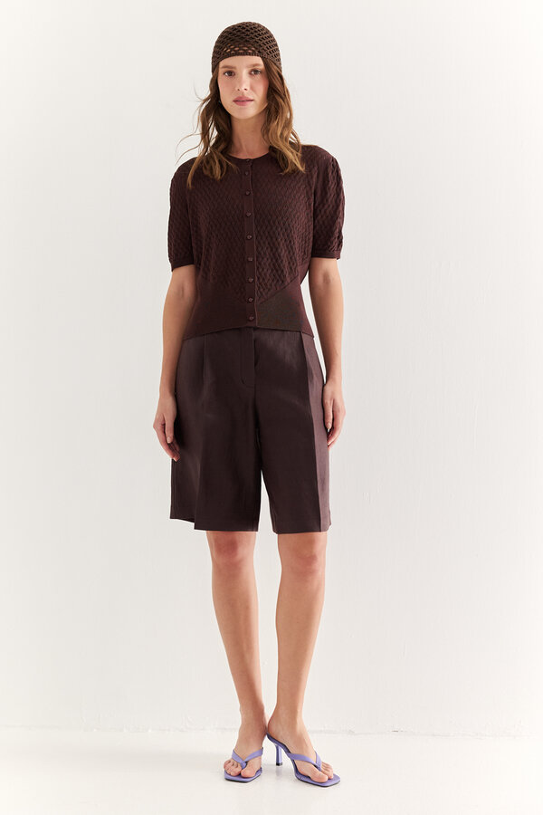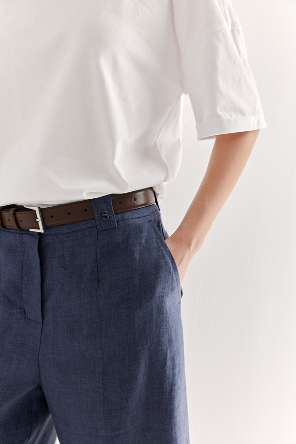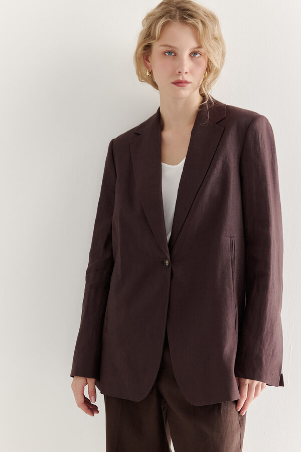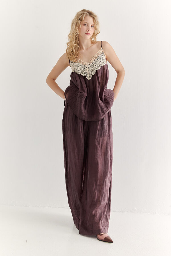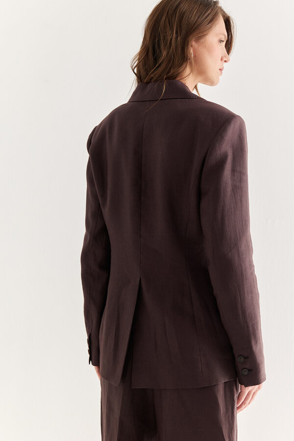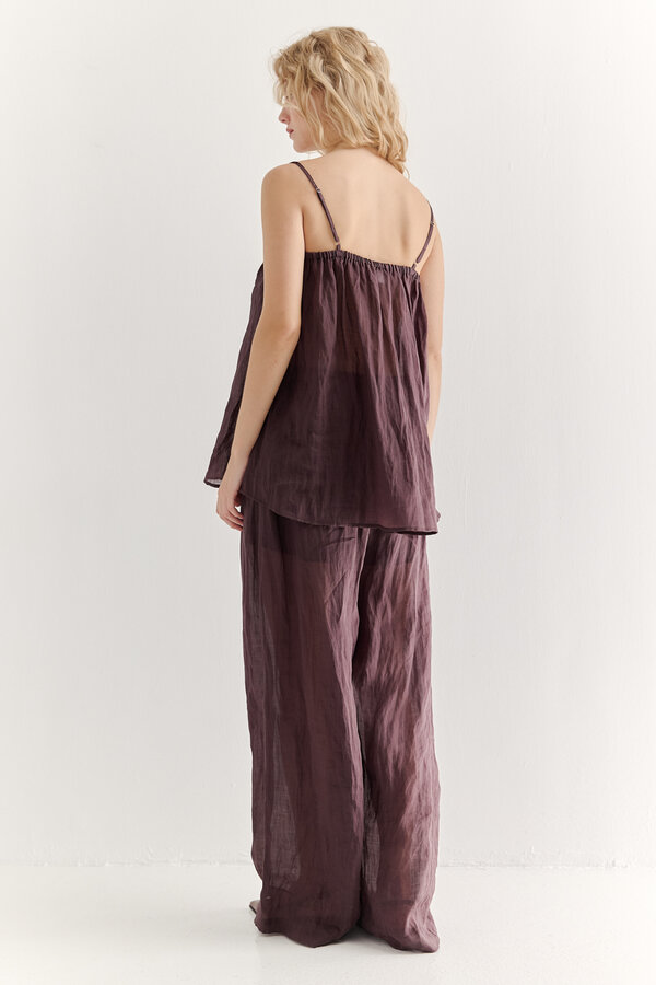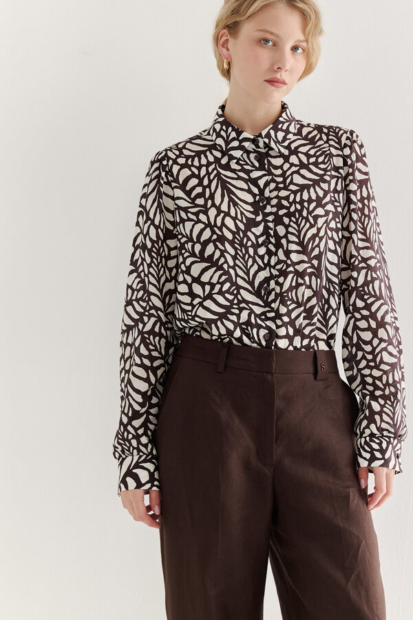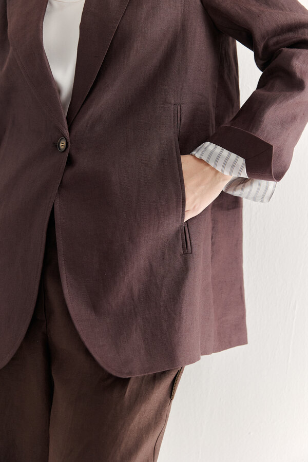 33 Брюки прямого силуэта со стандартной посадкой. Костюмная ткань коричневого цвета (77% терилен, 18% район, 5% спандекс) 3400