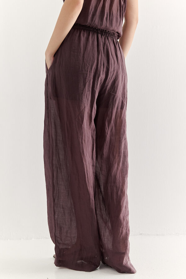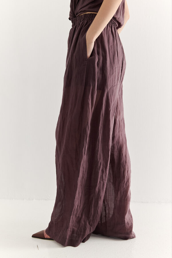 17 Брюки клеш от колен на узком поясе. Посадка на талии. Плательный матовый креп ягодного цвета (100% полиэстер) 4400