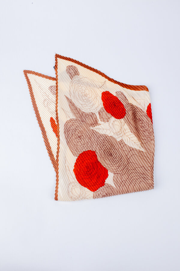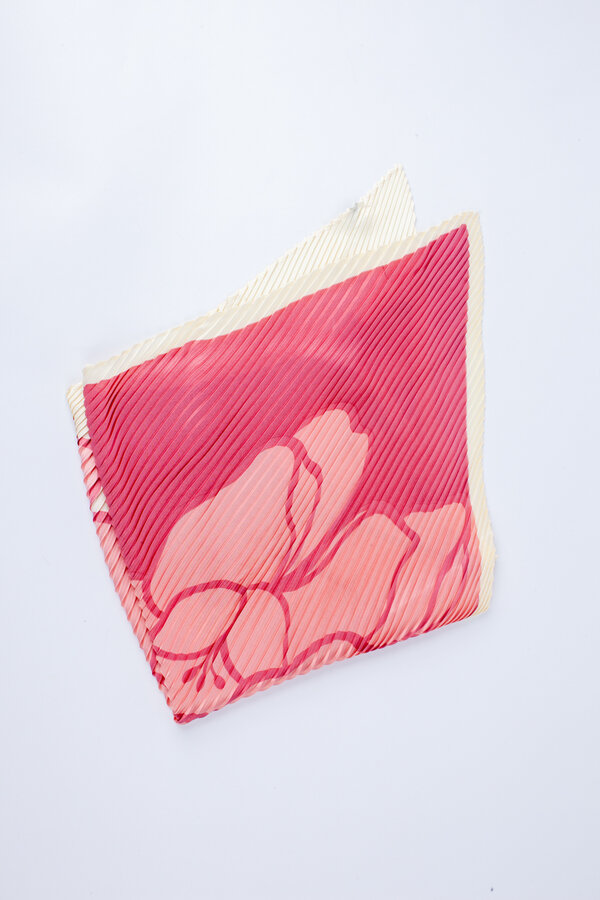 21 Блуза в стиле Бохо, объемного силуэта с воротником стойка и пышными рукавами на манжетах. Блузочный крэш-шифон красного цвета (100% п.э.) 3400