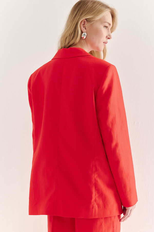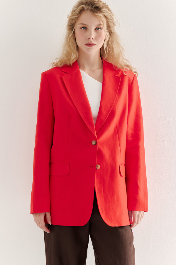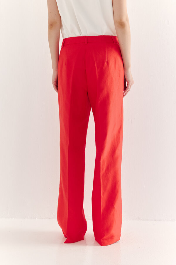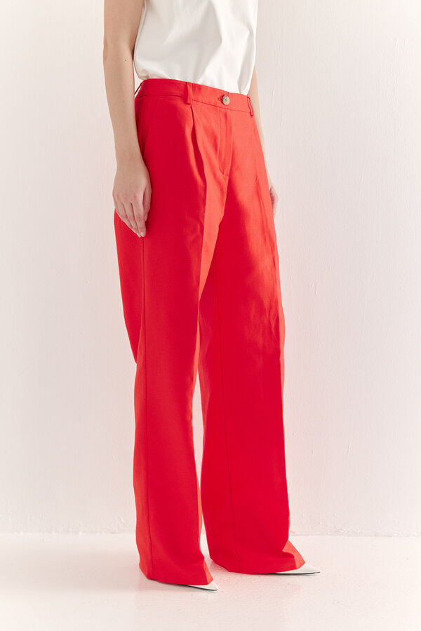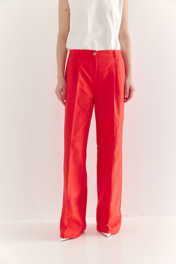 71 Юбка на поясе средней длины до колен. Застежка на молнию. NEW PREMIUM QUALITY/TREND COLOUR Костюмный хлопок-лен в диагональную выработку красного цвета (60% хлопок, 40% лен) 3350