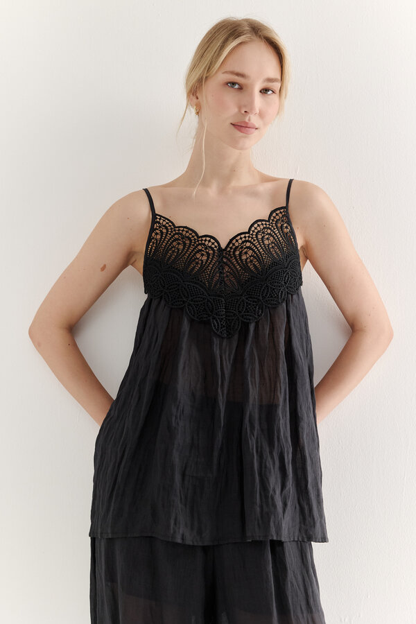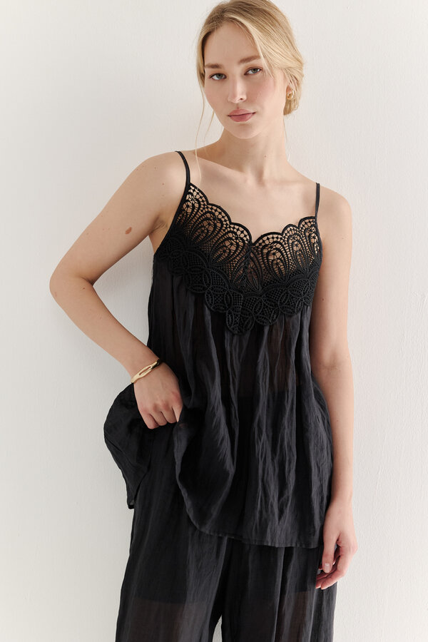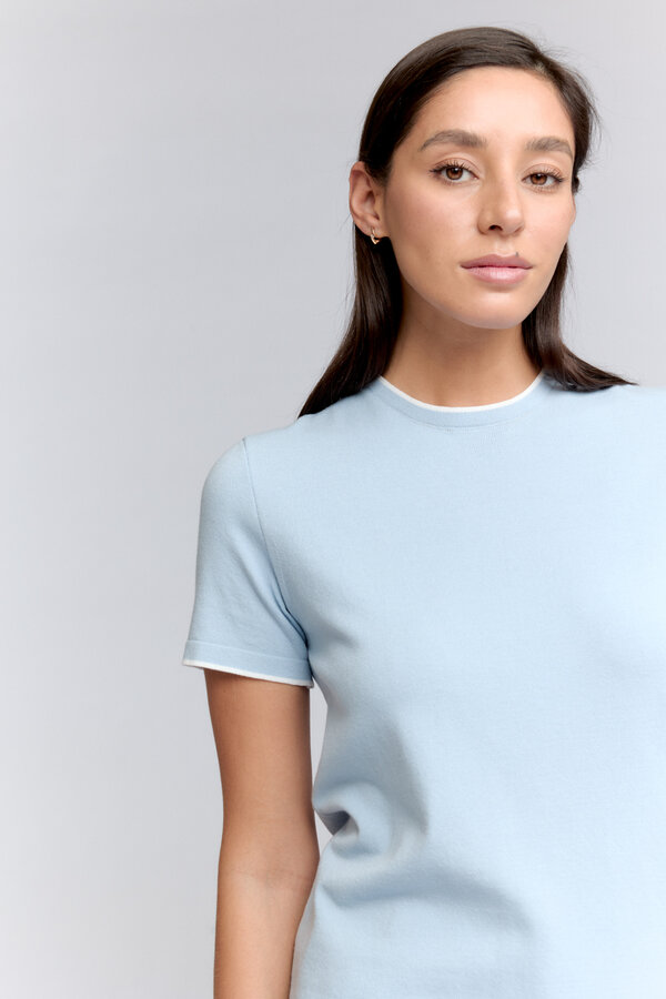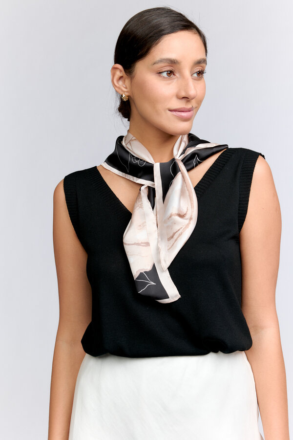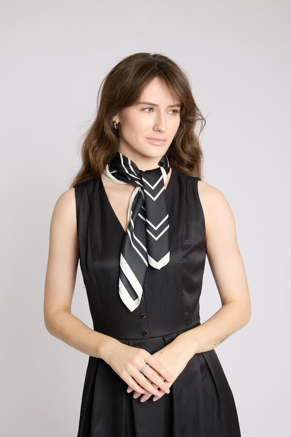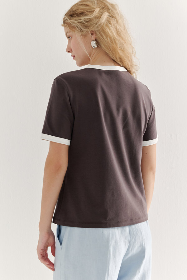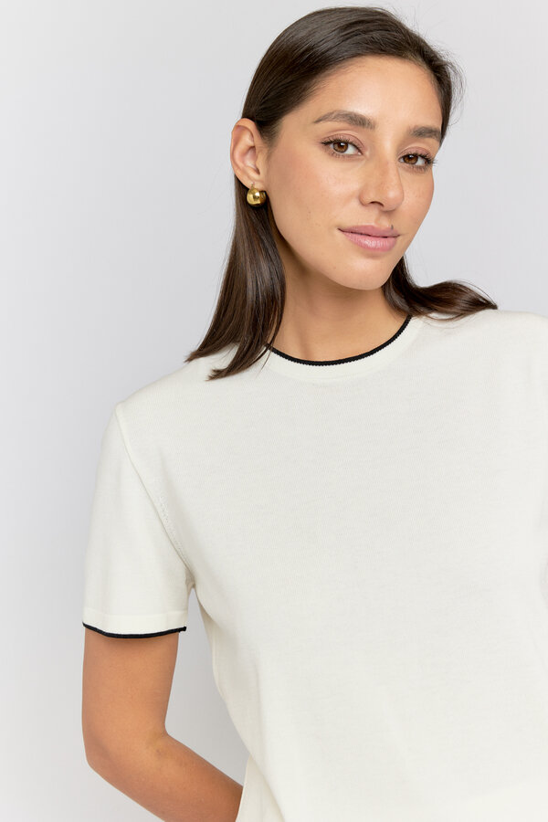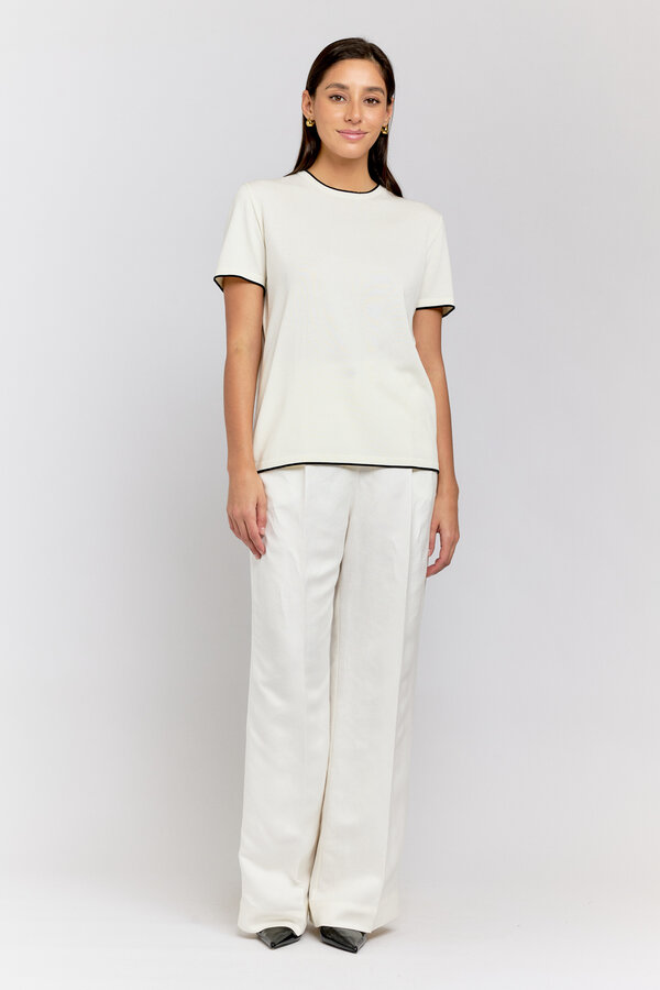 8 Топ с контрастной отделкой по вырезу горловины и проймы. Черно-молочный (67% вискоза, 29% полиакрил, 4% полиамид) 2700