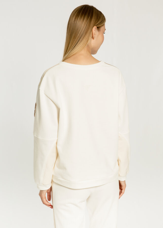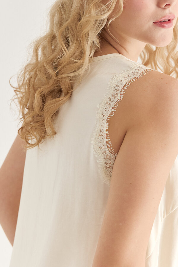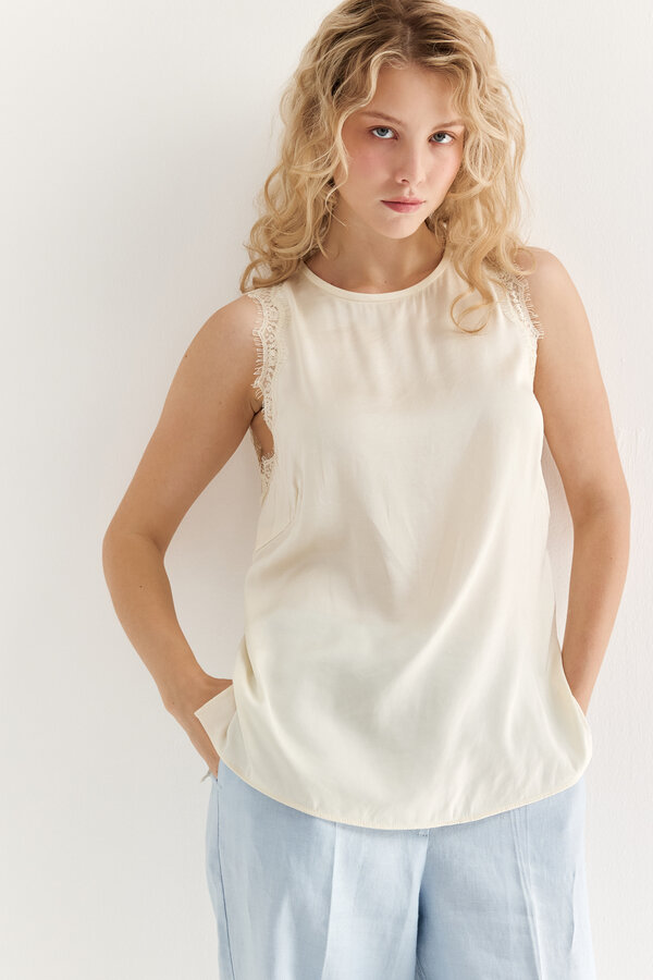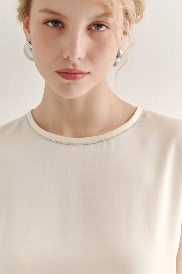 2 Блуза со спущенным плечом без рукавов, с круглым вырезом, свободного кроя. Молочный с золотом (62% вискоза, 26%полиакрил, 5%полиамид, 4 метанит, 3% эластан) 3200