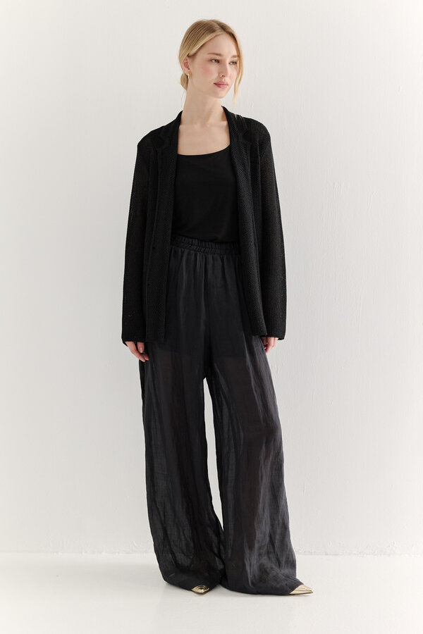 7 Стильные силуэтные брюки на любой для нарядных и элегантных образов. Стрелки придают силуэту изящество, зрительно вытягивая ноги. Комфортное сочетание шерсти, шелка и вискозы обеспечивают идеальную посадку и сохраняют тепло и уют. NEW PREMIUM QUALITY Костюмная ткань с шерстью и шелком премиального качества черного цвета (67%п.э., 20%вискоза, 4%шелк, 4%шерсть, 5%спандекс) 4600