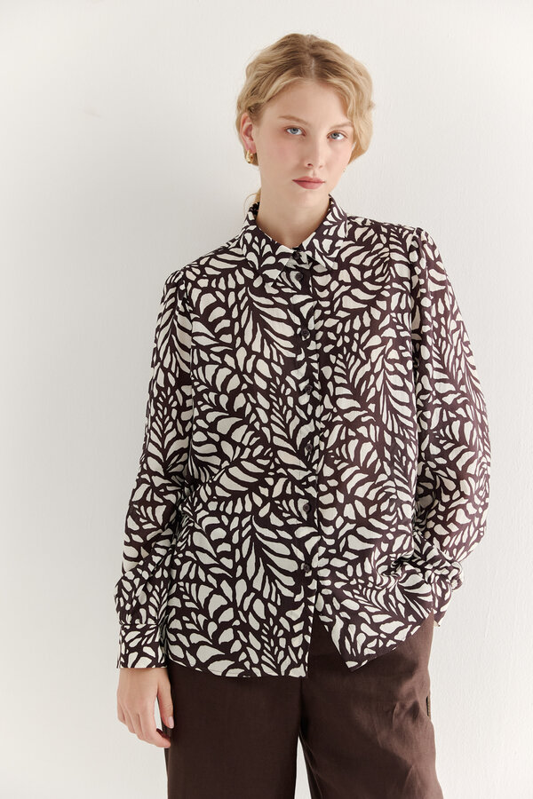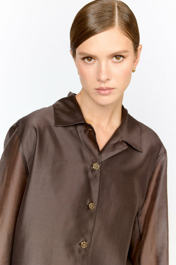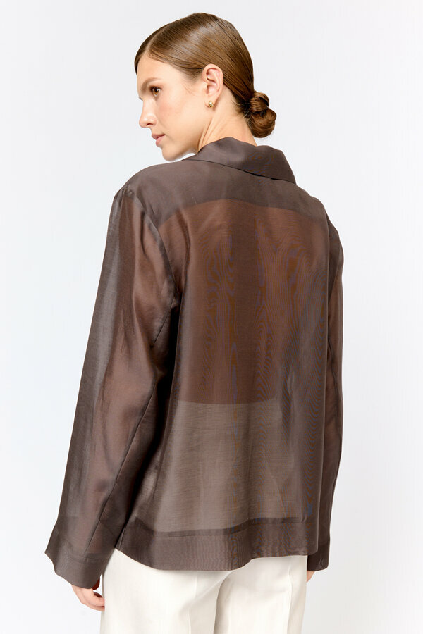 6 Блуза прямого силуэта с короткими рукавами NEW Блузочная струящаяся вискоза с жемчужным блеском цвета мокко (61% вискоза, 39% п.э.) 2000