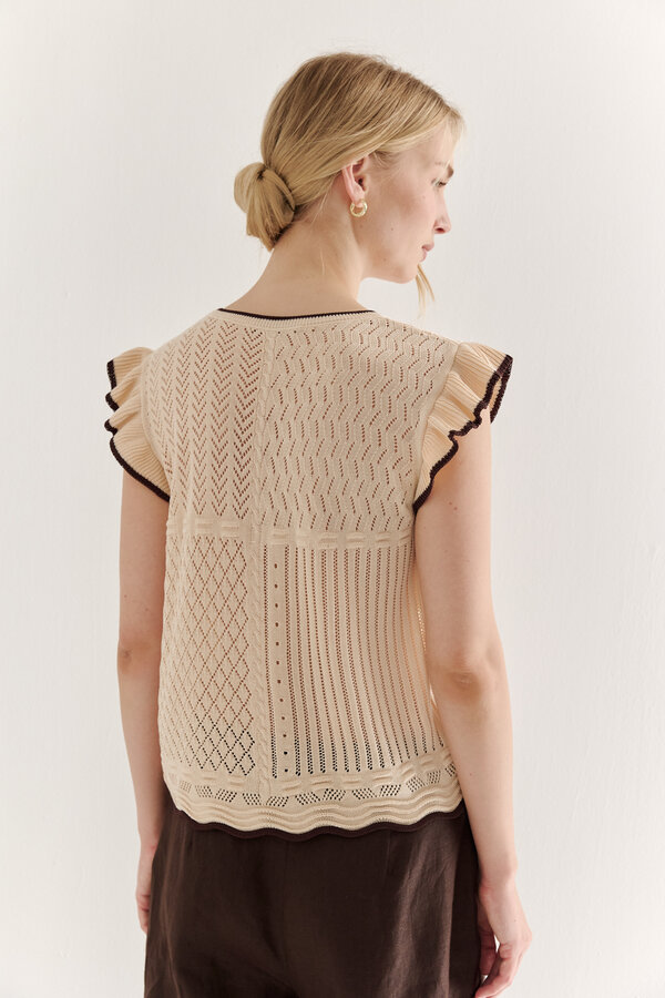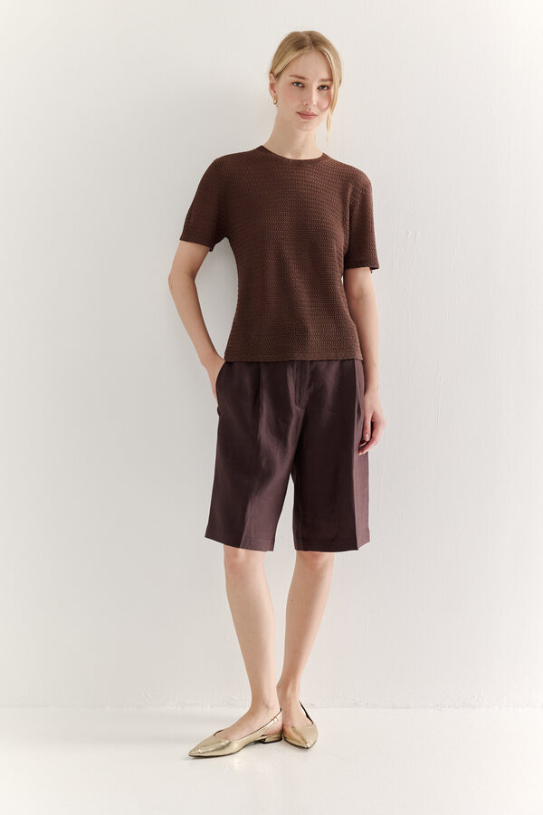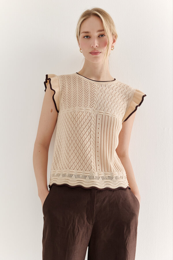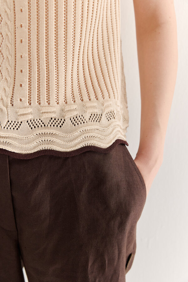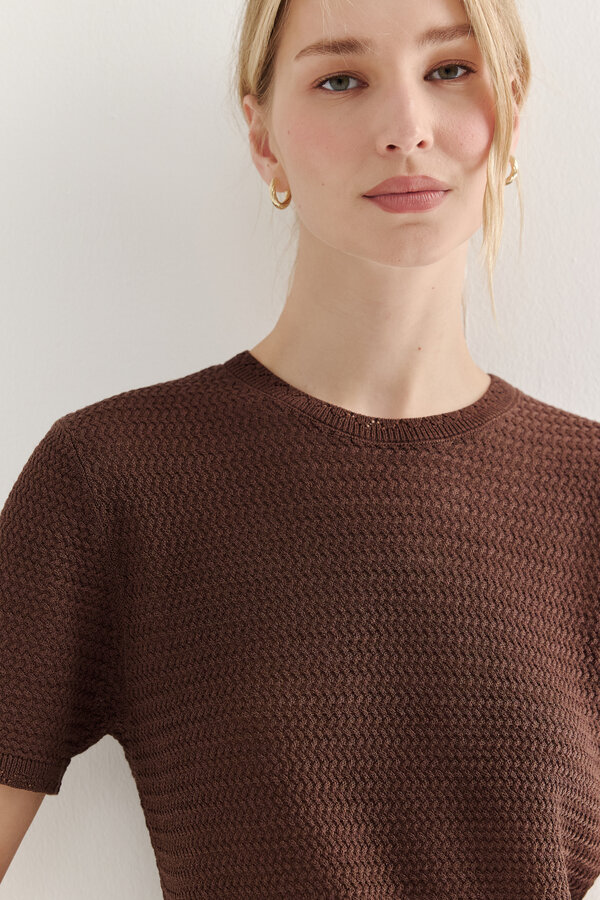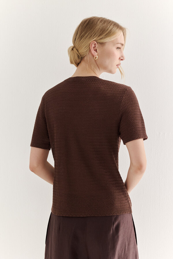 14 Джемпер вязаный с коротким рукавом прямого кроя Темно-бежево/молочный (100% МЕРСЕРИЗИРОВАННЫЙ ХЛОПОК) 3000