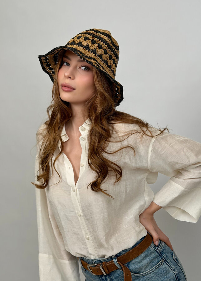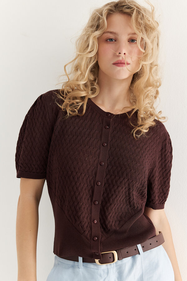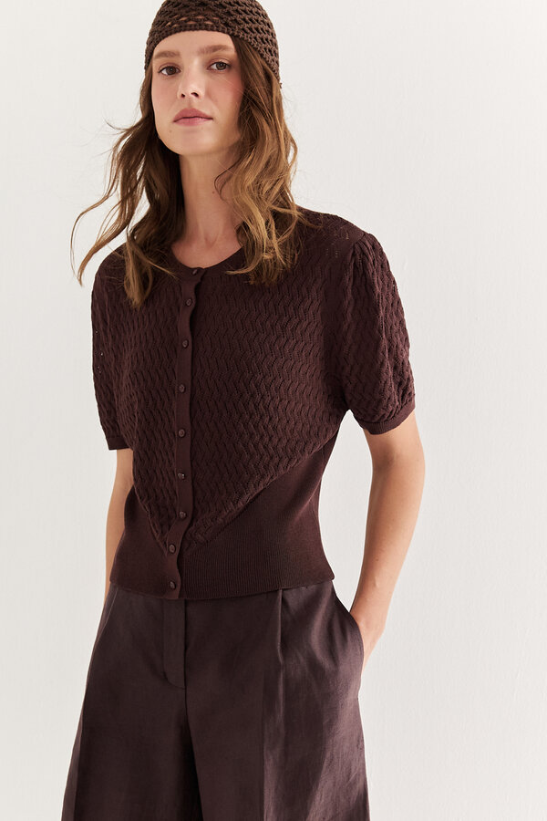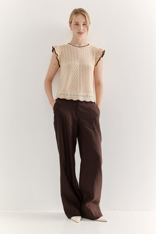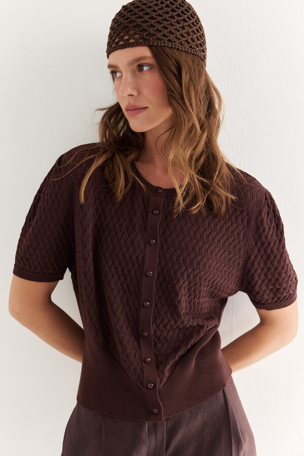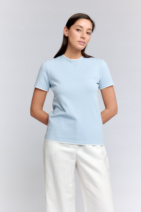 14 Джемпер вязаный с коротким рукавом прямого кроя Темно-бежево/молочный (100% МЕРСЕРИЗИРОВАННЫЙ ХЛОПОК) 3000