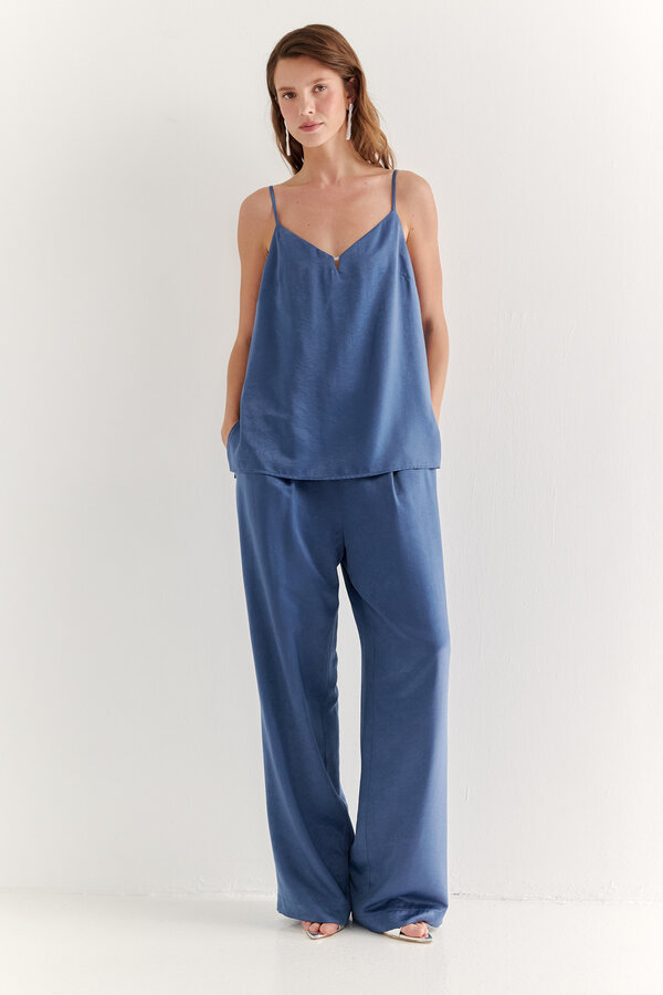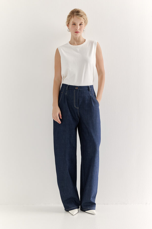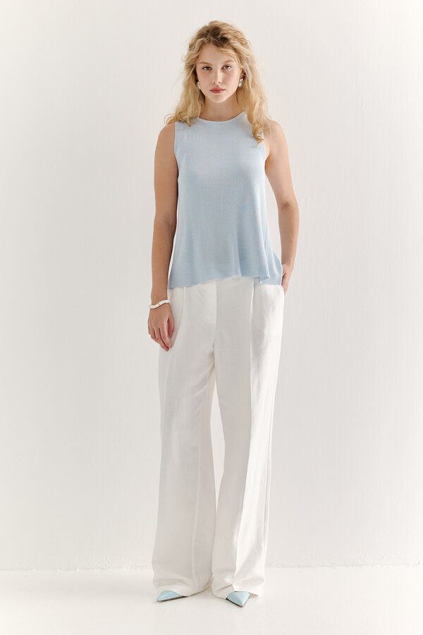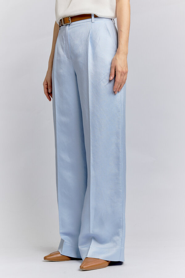 32 Прямые брюки со складками по поясу и посадкой на талии. TREND PREMIUM QUALITY Костюмная ткань с шерстью премиального качества мятного цвета (46% п.э., 28% терилен, 20% район, 4% шерсть, 2% спандекс) 5600