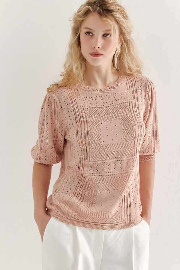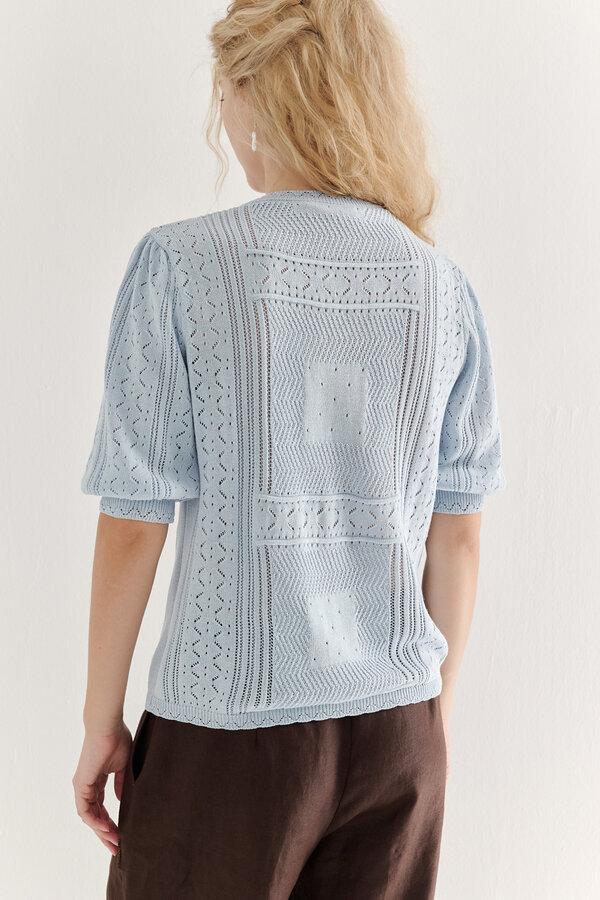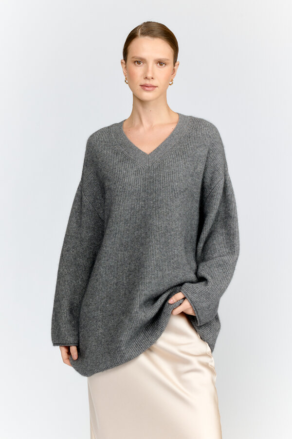 37 Джемпер с ажурной вязкой и фигурными рукавами Серый (100% полиэстер) 2450 1500