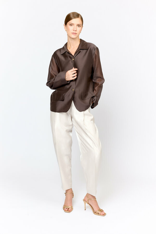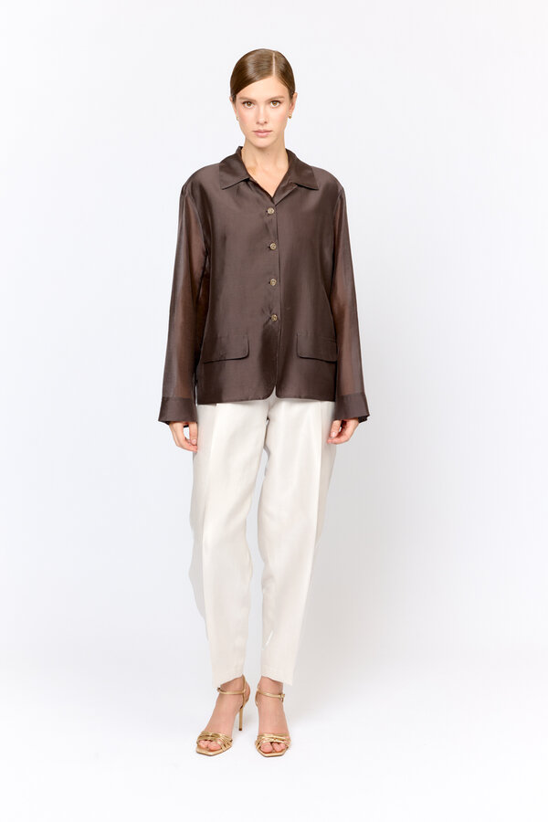 Жакет рубашечного кроя, без подклада. Лён. Крой свободный, рр 46, но до 50го свободно.