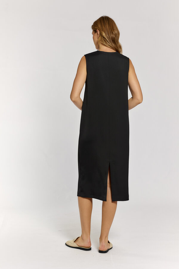 108 Футлярное платье с акцентными плечами, без рукавов. Вырез горловины V-образный. Длина до середины икры, по спинке разрез. 64% терилен, 30% район, 6% спандекс 3200 2000