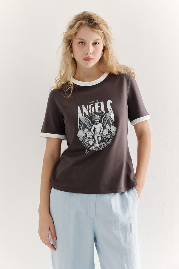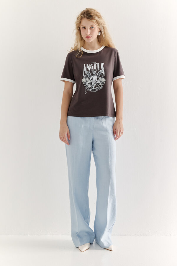 22 Футболка прямого кроя с коротким рукавом. Принт "Пляж" Хлопковое трикотажное полотно пике молочно-серого цвета (100% хлопок) 1950