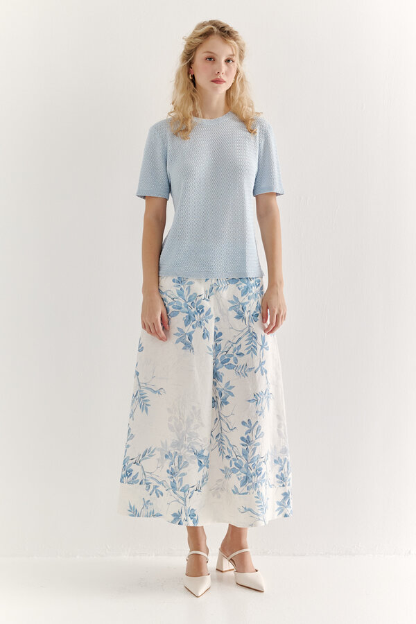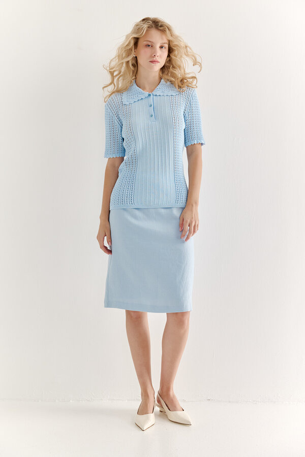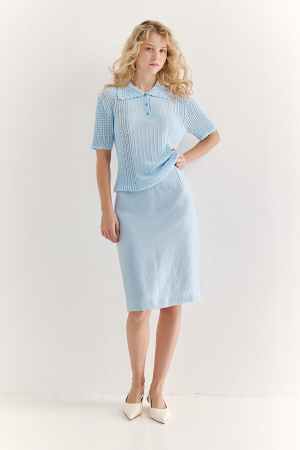 7 ЮБКА СИЛУЭТНАЯ НА ОБТАЧКЕ НА МОЛНИИ. ДЛИНА МИДИ NEW PREMIUM QUALITY Вискоза в диагональную выработку голубого цвета (100% вискоза) 3100