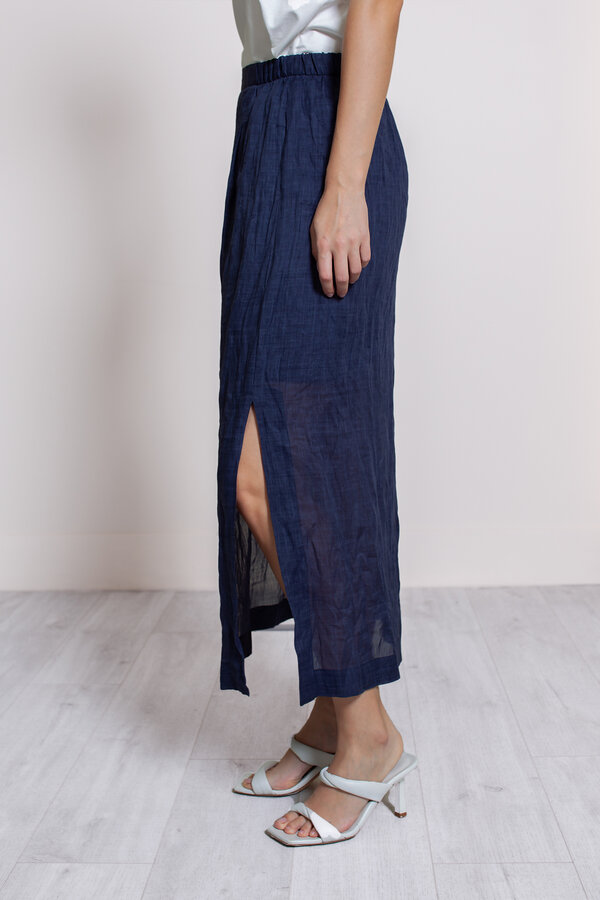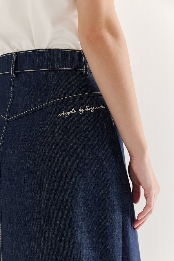 1 Длина макси, необработанный край, декор с необработанным краем спереди по линии бедра Юбка джинсовая цвет грязно-голубой (100% хлопок) 4200