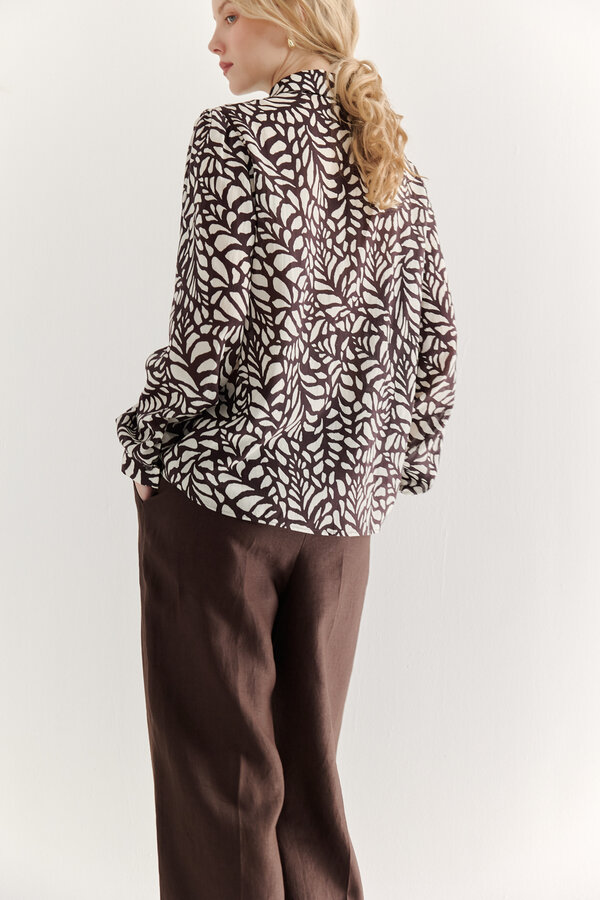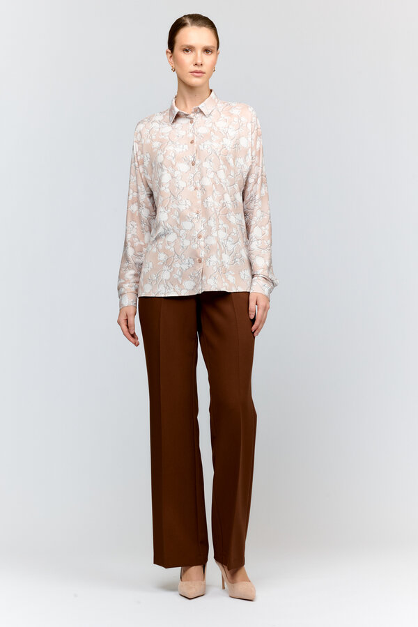 5 Брюки прямые на резинке. Посадка средняя. TREND NEW PREMIUM QUALITY Креповая итальянская вискоза с черно-бело-коричневым орнаментом Италия (100% вискоза) 3500