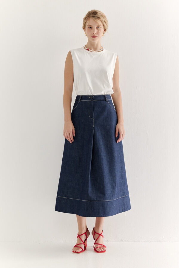 20 Юбка с карманами и со складкой в передней части. TREND NEW PREMIUM QUALITY Хлопок плательно-брючный сливочного цвета (98% хлопок, 2% эластан) 2600 1000