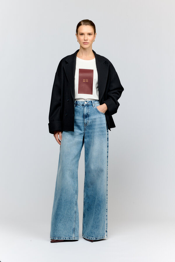 Здравствуйте, мои тоже выставите, пожалуйста, 44 размер (в размер) . Мне большие. 2300 рублей. Джинсовые брюки слоучи, с высокой посадкой, длиной до щиколотки. Подрезной бочек оформлен дополнительными рельефными линиями. На задних половинках, прорезные рамки. TREND PREMIUM QUALITY Джинсовая ткань цвета экрю ( 97% хлопок , 3% эластан) Италия, Fratelli Comforti