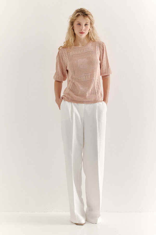 21 Широкие брюки со складками по талии. PREMIUM QUALITY Фактурная костюмная ткань пыльно-розового цвета (54% терилен, 31% район, 13% акрил, 2% спандекс) 4800 2500