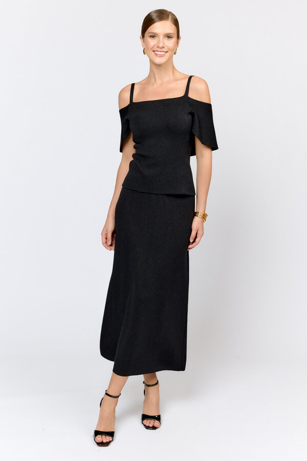 4 Юбка на резинке длины мини. ЧЕРНЫЙ/ЧЕРНЫЙ (40% ВИСКОЗА, 6% МЕТАЛЛИЗИРОВАННОЕ ВОЛОКНО, 54% ПОЛИЭСТЕР) 2700