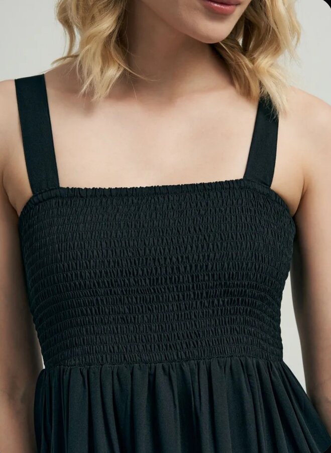 Полиэстр. Очень лёгкий. Без подклада, белье лучше черное под него, светлое может выделяться.
