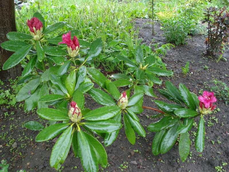 Рядом с ним посажен в одно и то же время, лет 5 назад, рододендрон Нова Зембла. Набрал бутоны в первый раз.
