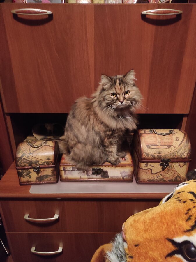 Ой, можно я тогда ещё одно фото из того незабываемого утра? На нем хорошо видно, что это не отражение, а перепутавшая квартиры Мася и совершенно офигевшая Муся :-)