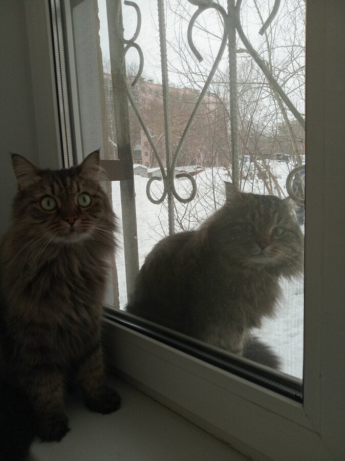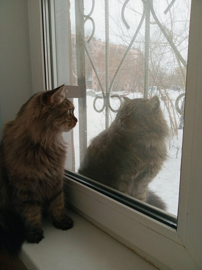Я думала, что у меня галлюцинации - захожу в комнату, а там две кошки на окне :eek: