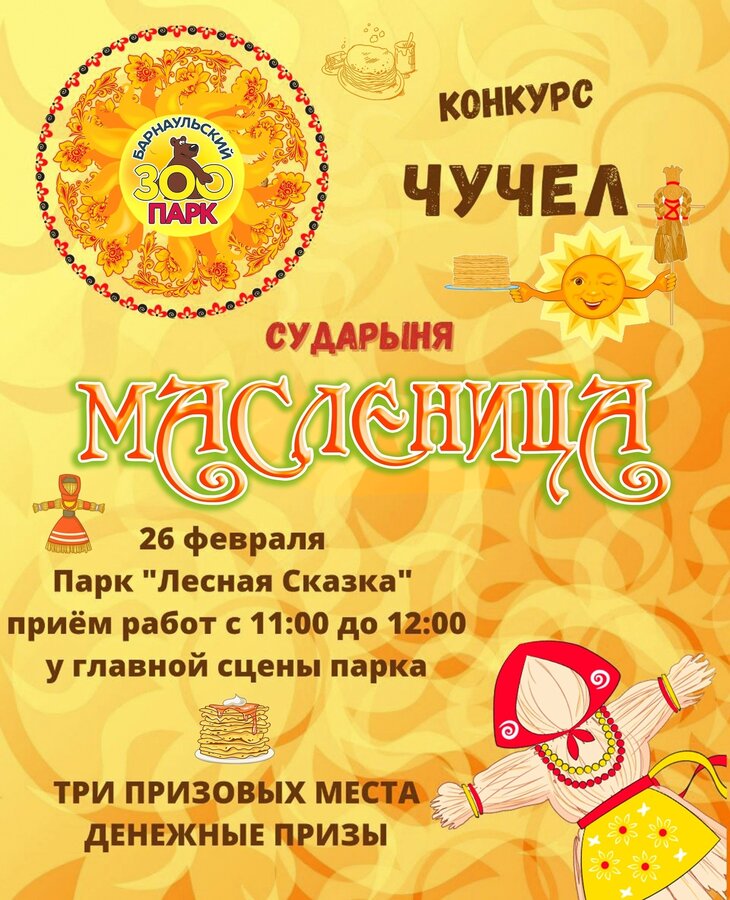 Весна-красна уже на пороге. А значит, пора провожать суровую зиму. Парк "Изумрудный" и "Русское Радио Барнаул" приглашают жителей и гостей города на "Самую русскую Масленицу". Мероприятие пройдет 17 марта 2024 года, начало в 12:00.