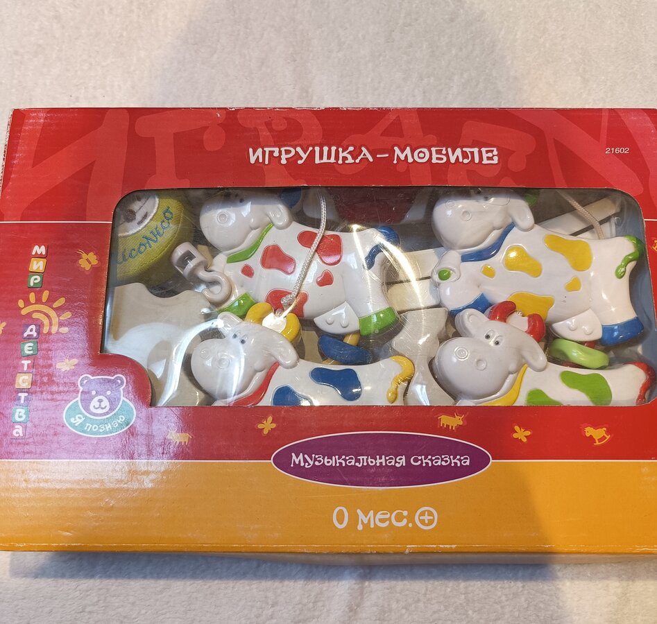Мобиль в кроватку, состояние нового, не пользовались, но штучка, которая заводит вращение и музыку, не от него. Всë собирается и играет как нужно