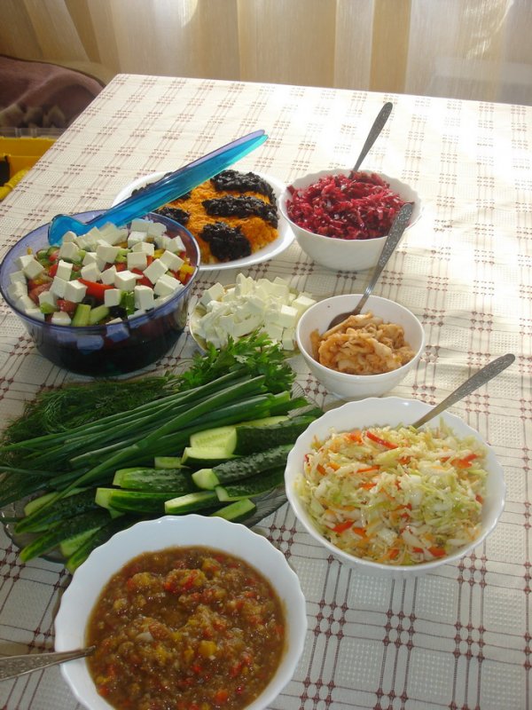 У Миши был день рождения, сфотала только часть того, что было на столе. Потом забегалась и забыла :)