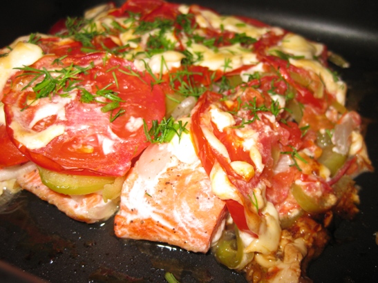 а на обед сегодня была нерка под овощами (лук, болг. перец, помидорка)