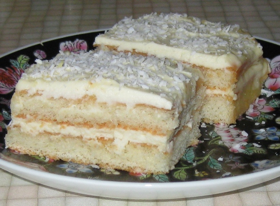Из желтков сделала бисквит на кипятке, потом пропитала лимонным курдом и крем (ванильный творожок + сливки). Получилось нежно и освежающе :-)