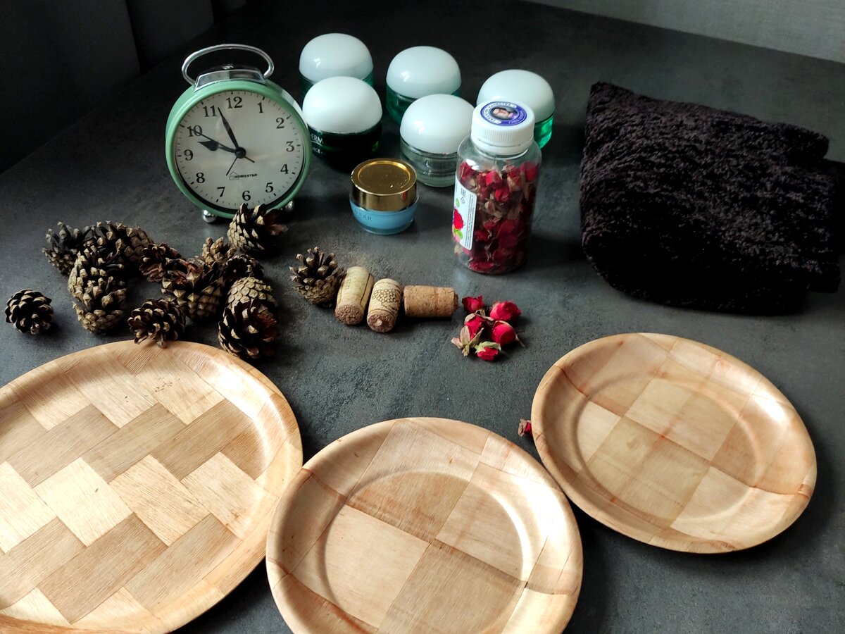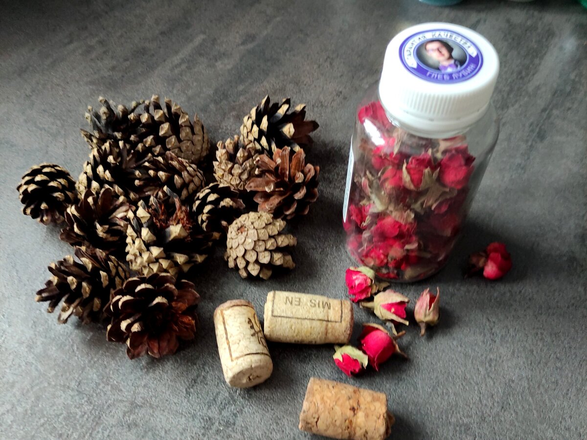 Шишки, пробки, часы неисправные современные на батарейке - на разбор. Банки стеклянные из-под крема 50 мл. Бутоны роз (пищевые, но срок годности вышел давно).