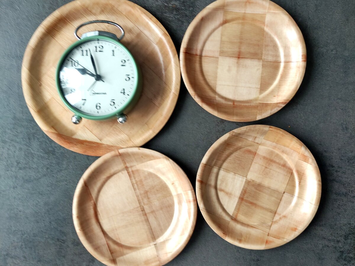 Тарелки дерево (бамбук?), диаметр 20 см - 1 шт. 16 см - 3 штуки. Новые, не использовали!