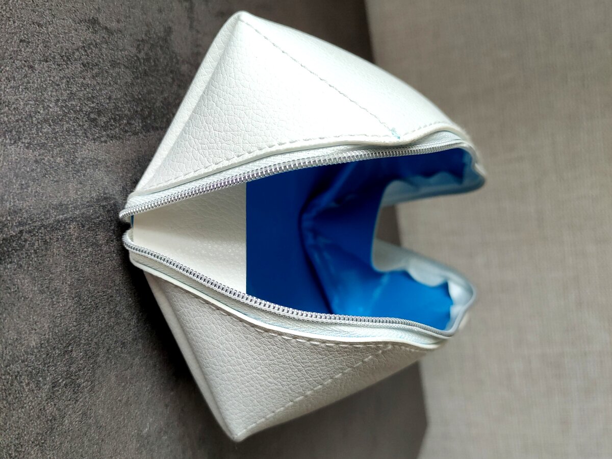 Фирменная косметичка La roche posay. Не использовалась, но упаковка утеряна. Искусственный материал, внутри синий. Без подкладки. Около 16 см в длину. Боковая сторона 6,5х6,5. 400 рублей.