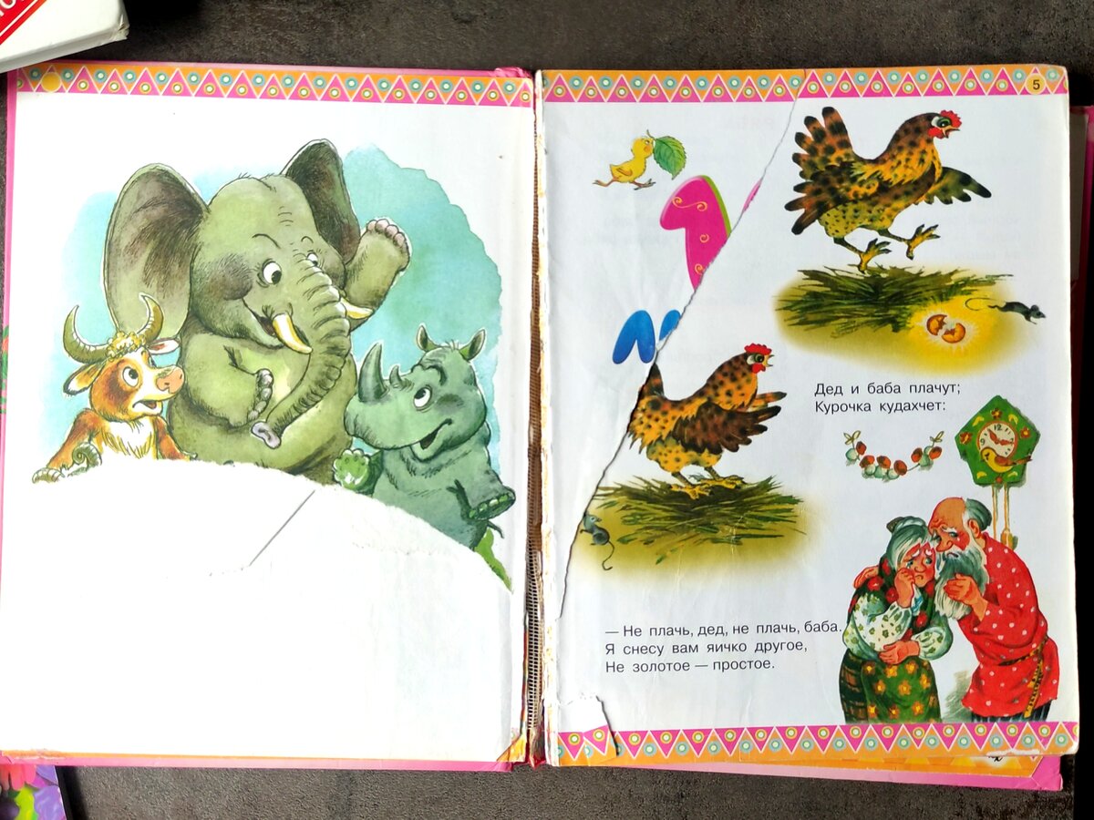 100 любимых маленьких сказок. Оторваны начало и конец, блок отходит от переплёта, но сказки действительно любимые, много Сутеева.