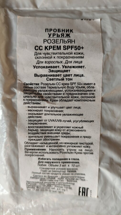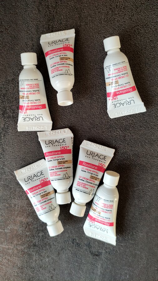 СС крем 7 штук по 3 мл. Годен до 10.2026. Тон заявлен светлый, но реально бежево-желтый! Uriage Розельян СС крем SPF50. 600 руб. за весь объем.