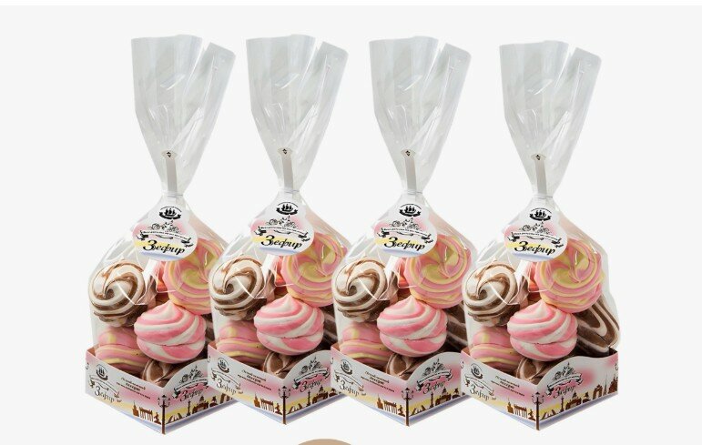 Зефир "Зефиркино счастье "Ассорти" (шоколадно-сливочный, клубничный -сливочный, клубнично-банановый) 380г 255р