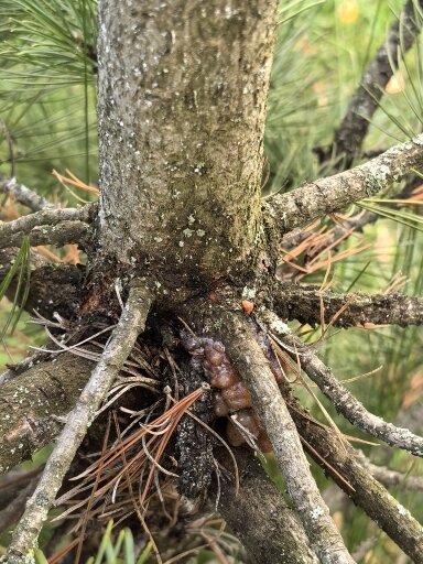 7. кедровая сосна 2: есть рыжие участки хвои около ствола