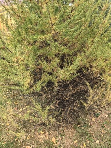3. горная сосна выглядит прилично, но если поднять ветки, то на земле под ней много опавшей хвои